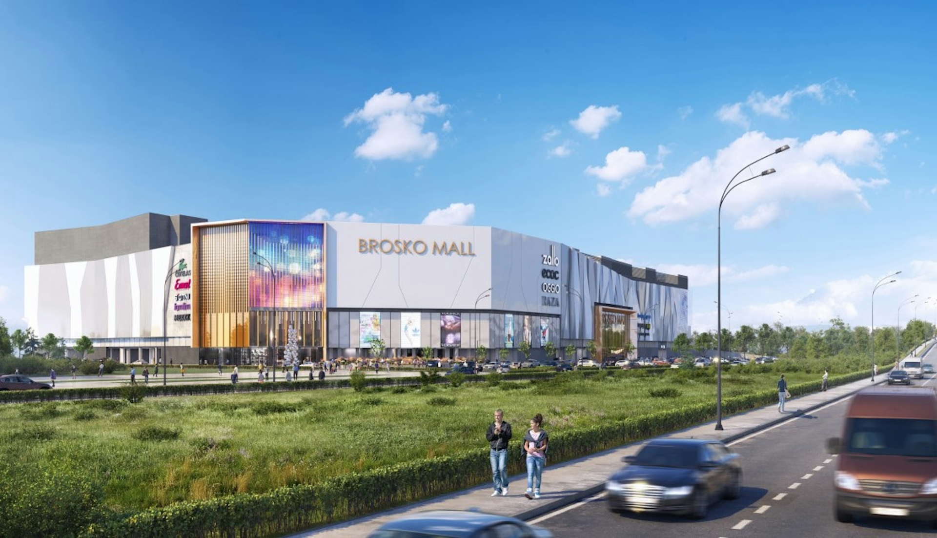 Brosco Mall 2, Khabarovsk: the second phase of the shopping center on the banks of the Amur River includes a concept hotel with an operating roof, where we designed a complete public space with inspiring views.