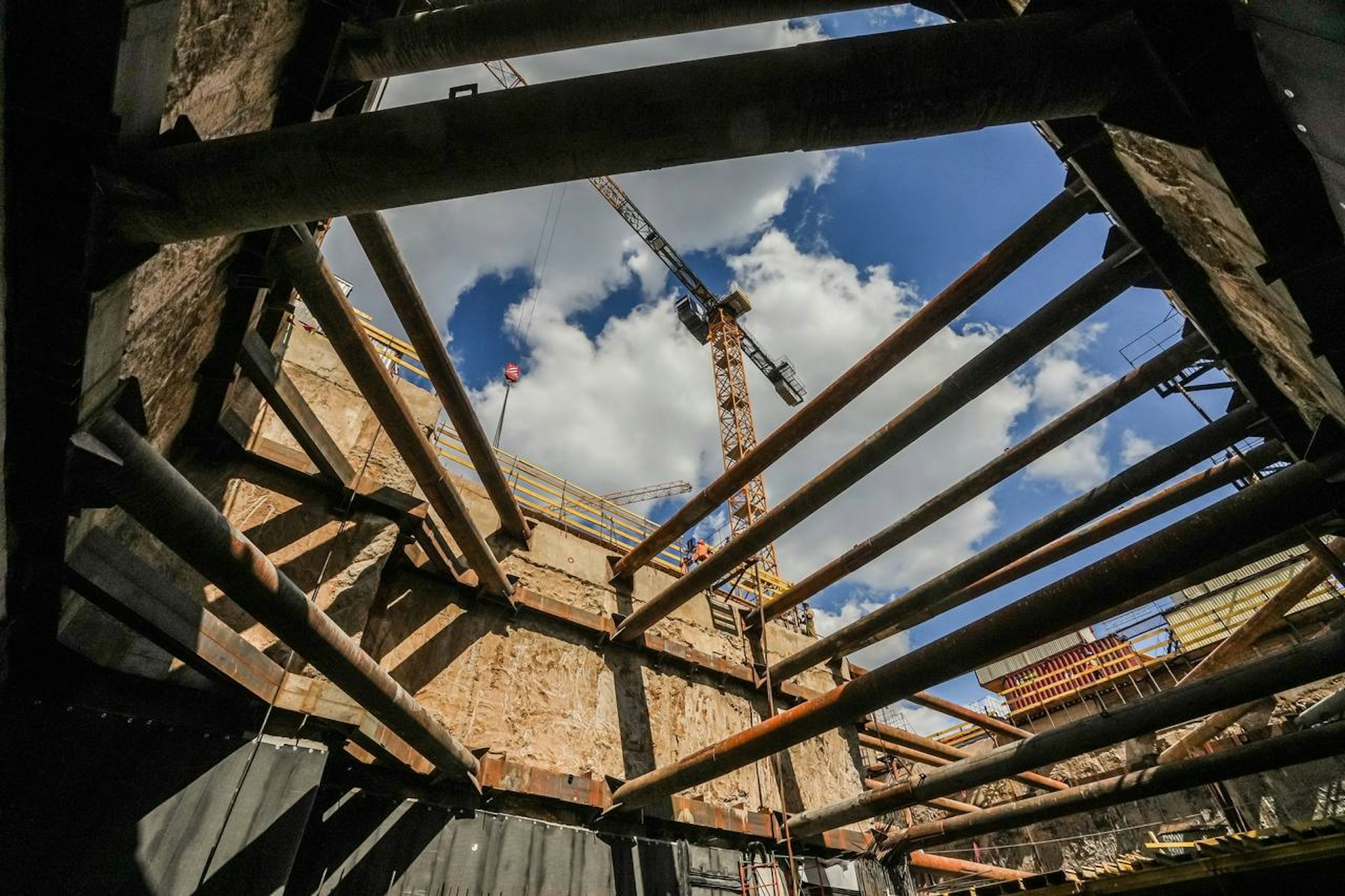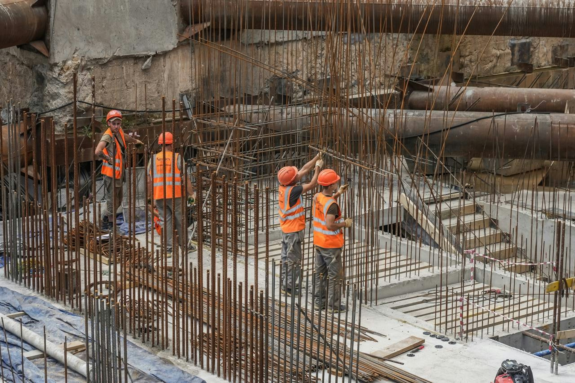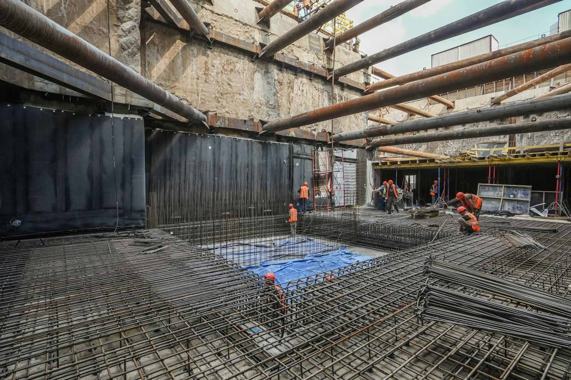 In July, the framework for two underground floors was successfully formed, the foundation slab was completed, and the water supply networks were installed. Currently, work on the monolithic structures of floors -3 and -2 is ongoing.