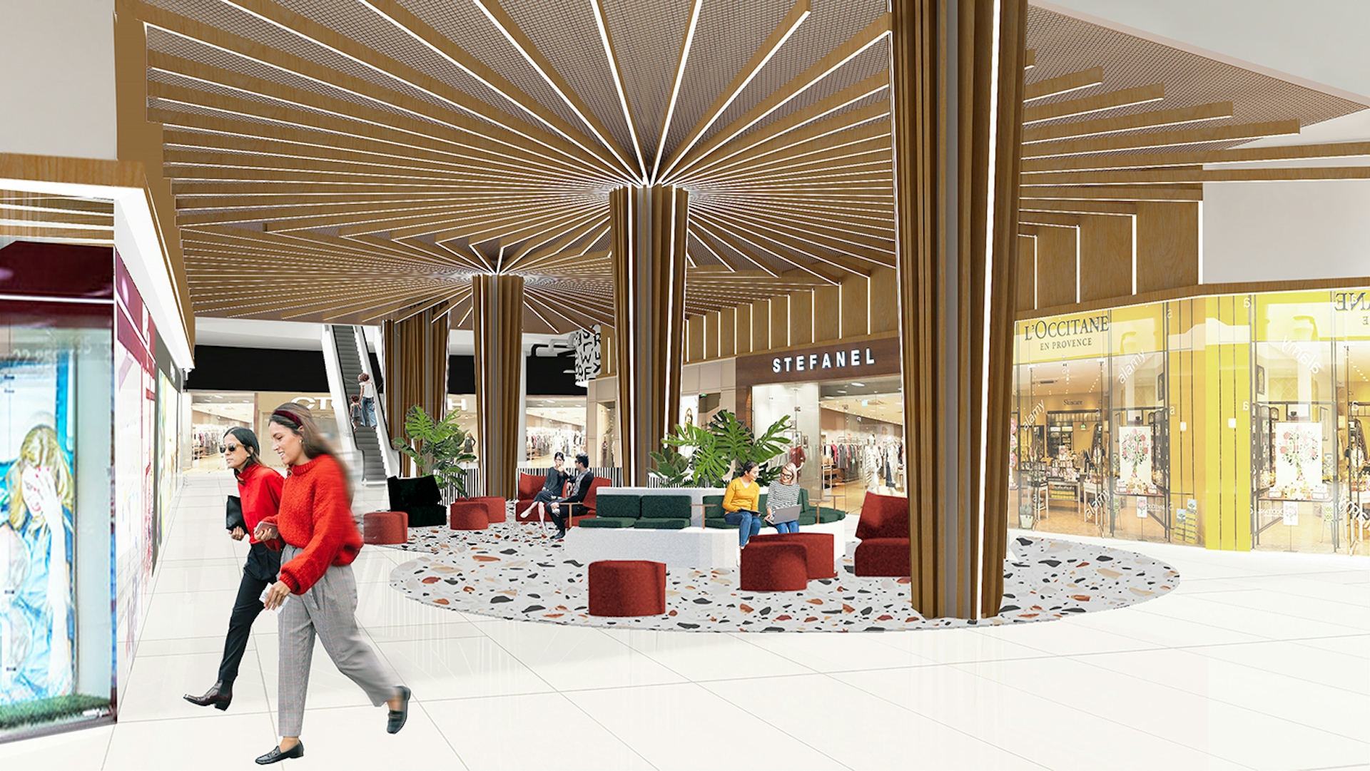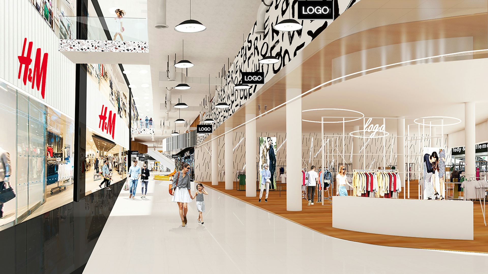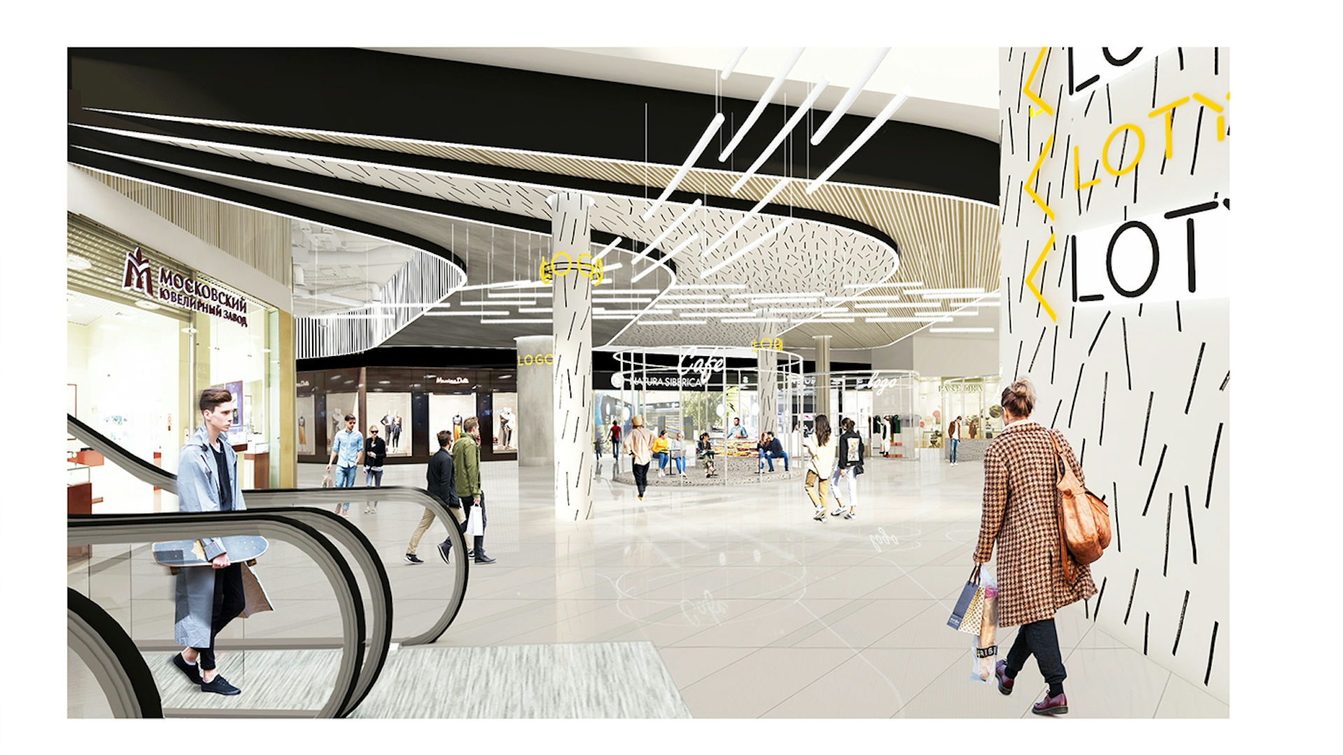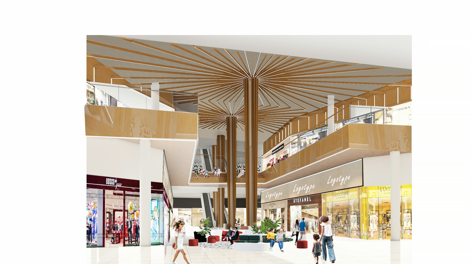 We believe in the new life and function of the existing spaces of the shopping center and offer two options for reconceptualization: Option 1: "Must have", which will change the overall atmosphere of the shopping center at minimal cost. Option 2: "Cult", which will turn Aviapark into an unforgettable space and enhance its brand and reputation. We propose an open floor plan for the north gallery of corner boutiques that will show the visitor all the storefronts and shorten the long walk along the existing retail corridor. We also want to "elevate" the two levels of storefronts to the floor above.
