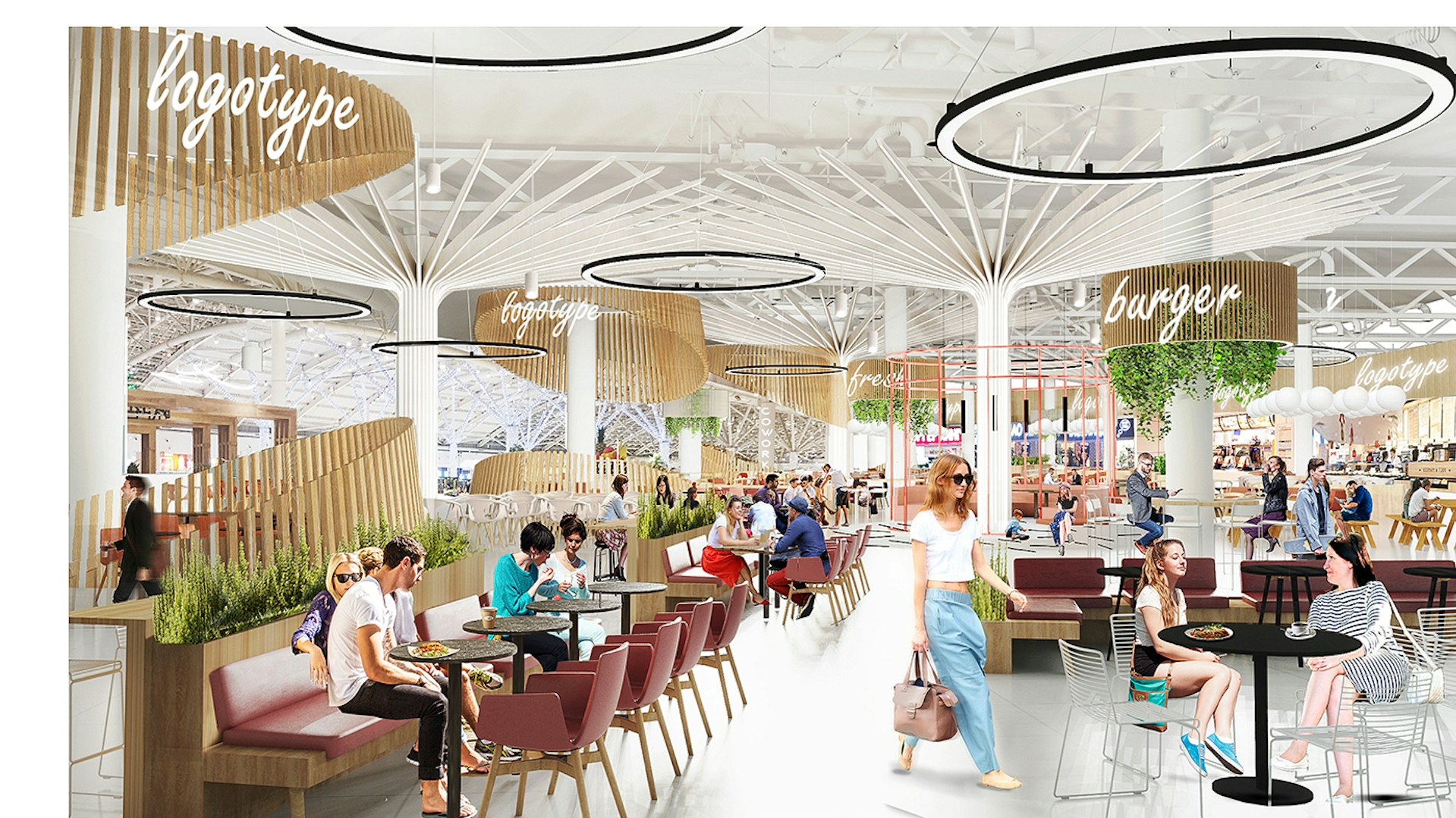 "Aviapark" is one of the largest shopping centers not only in Moscow, but also in Europe. Its immediate surroundings include the subway, public transportation stops, residential areas and parks. The shopping center is already very famous in the city thanks to the iconic elements of the concept, such as the aquarium, and one of the largest food courts in Moscow. When updating the interiors, we proposed to include new locations in the context of the existing 450 boutiques and restaurants - such places of strength as fresh MarkEAT and Trend Island department store.