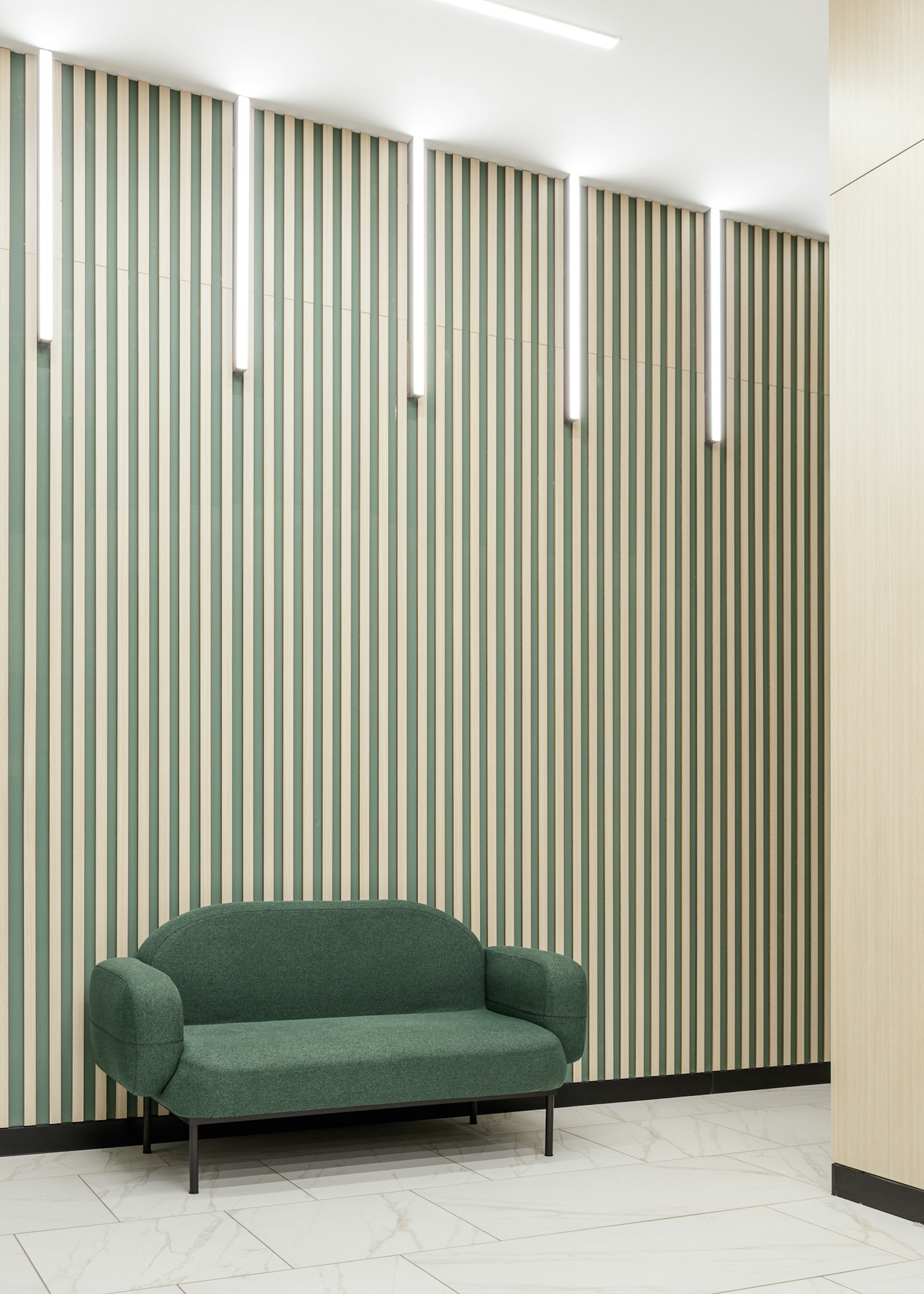 The design project is based on the idea of creating a light, calm interior, using natural materials in warm colors. Wooden finishing elements, plenty of greenery, glazed facade and good lighting create an atmosphere of comfort and natural harmony.