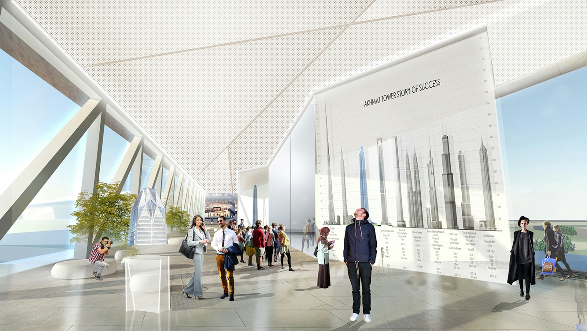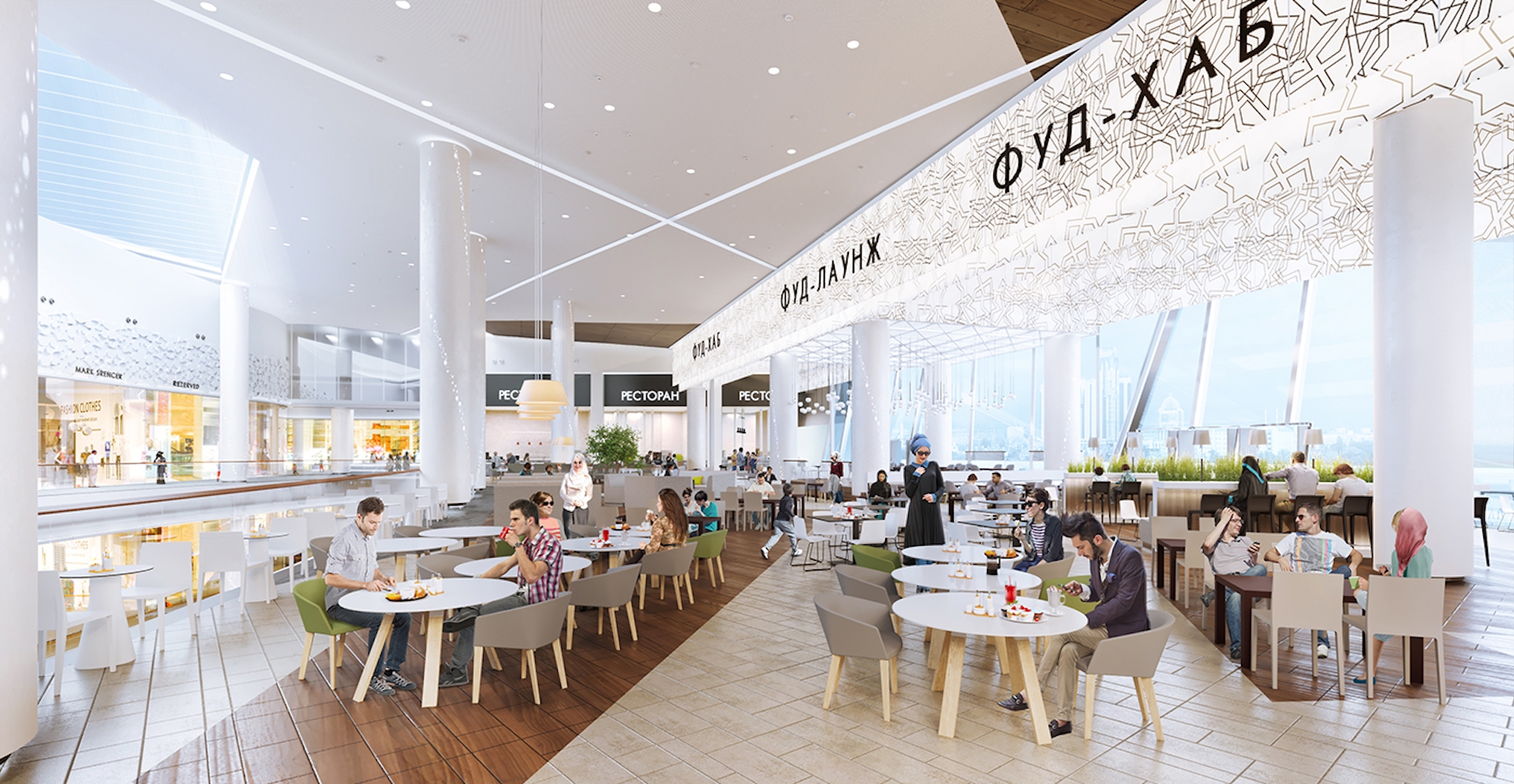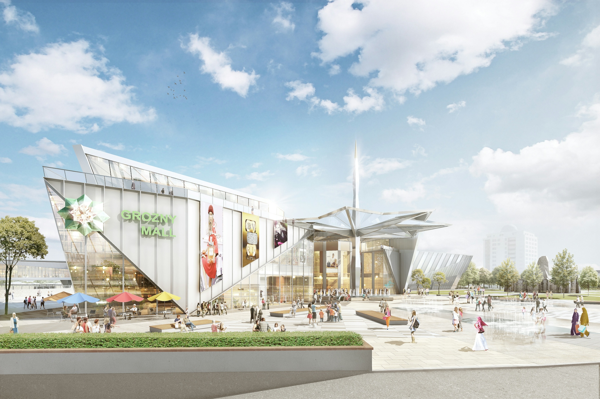 The Grozny Mall in BLANK was designed as part of a new urban complex featuring the Akhmat Tower skyscraper. The shopping center will offer a new level of service and lifestyle for this rapidly developing region of the North Caucasus. The main concept of the shopping center's brand: unique in Chechnya, value, preciousness, pride, brilliance.