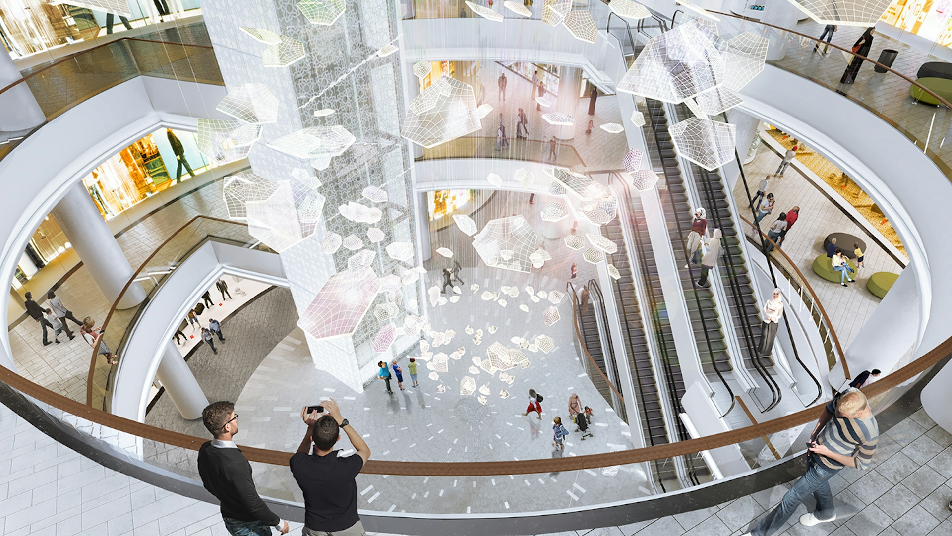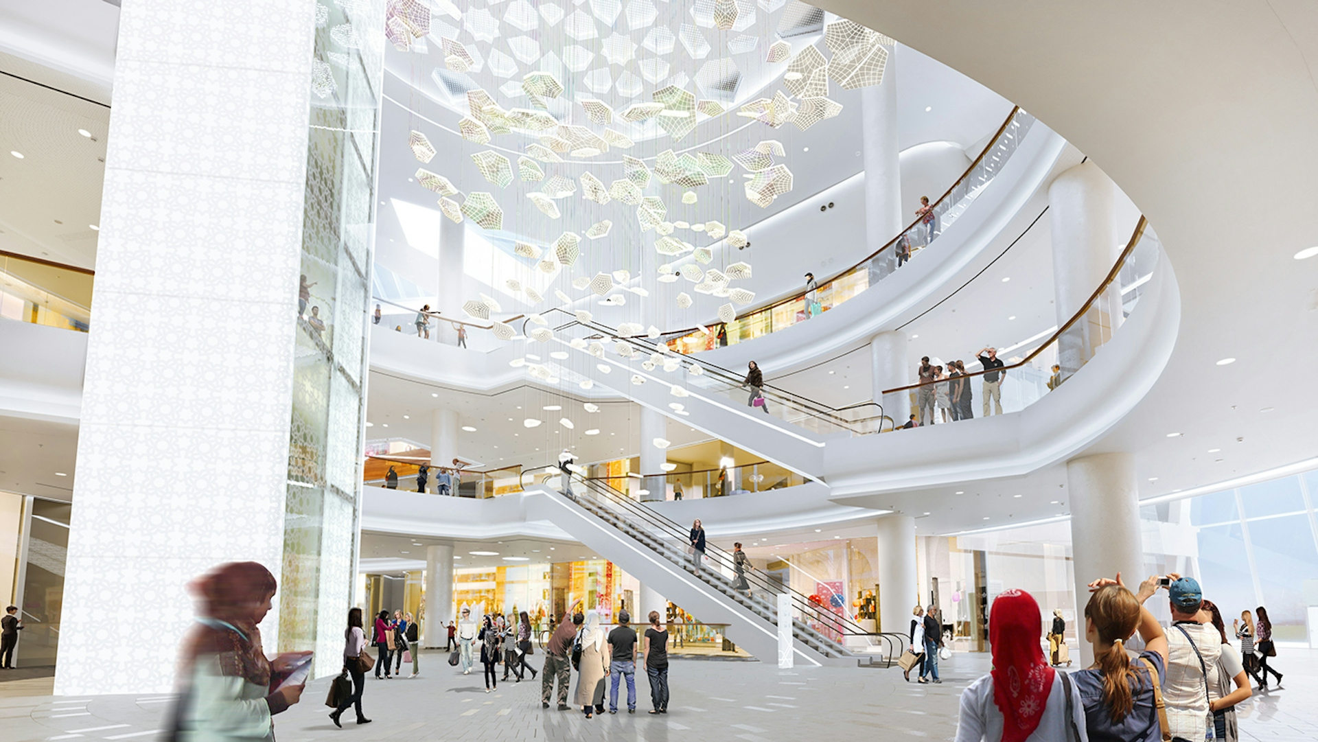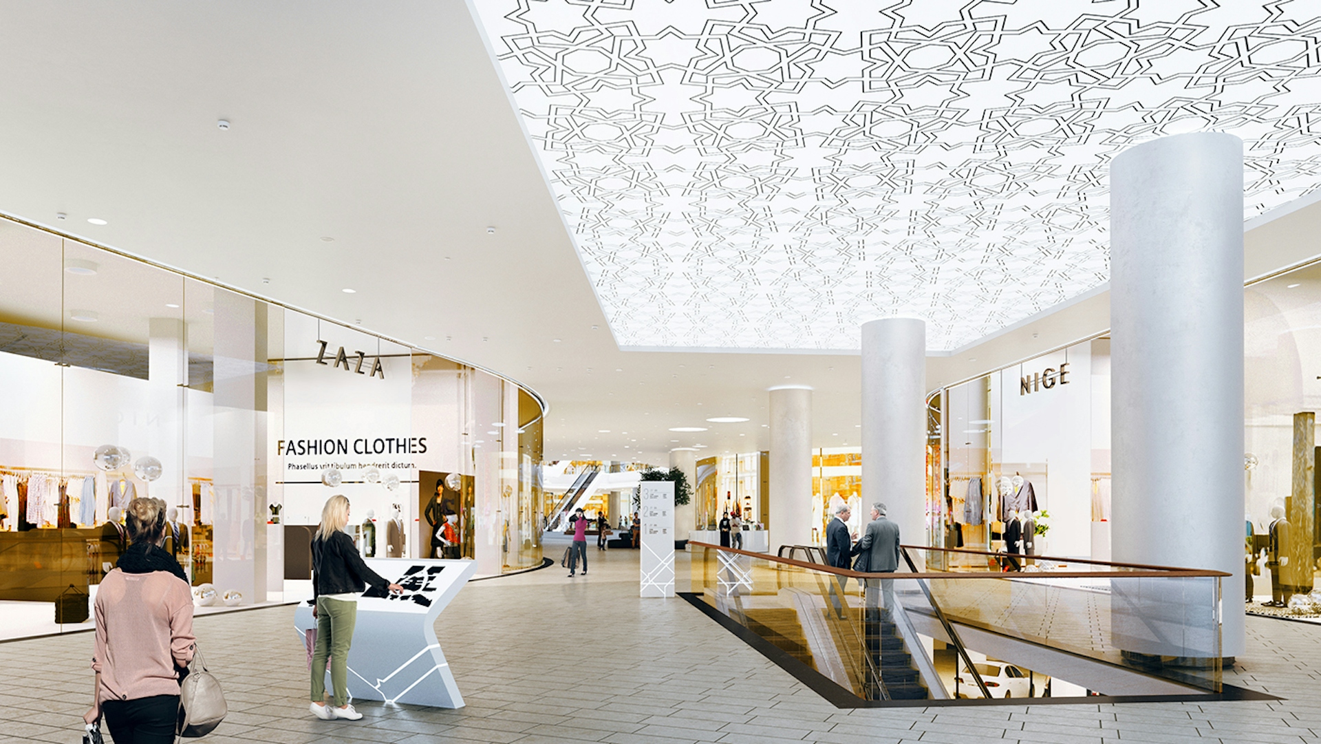 Our idea was to make the shopping mall bright and transparent, emphasizing the Islamic identity connected to local traditions. When we started the project, we conducted research on Middle Eastern and local ornaments and traditions. We proposed a bright, cozy, and modern interior with an Islamic touch in the details. We developed unique signature elements of the shopping center that create a "wow" effect and promote relaxation, diversifying the atmosphere and perception.