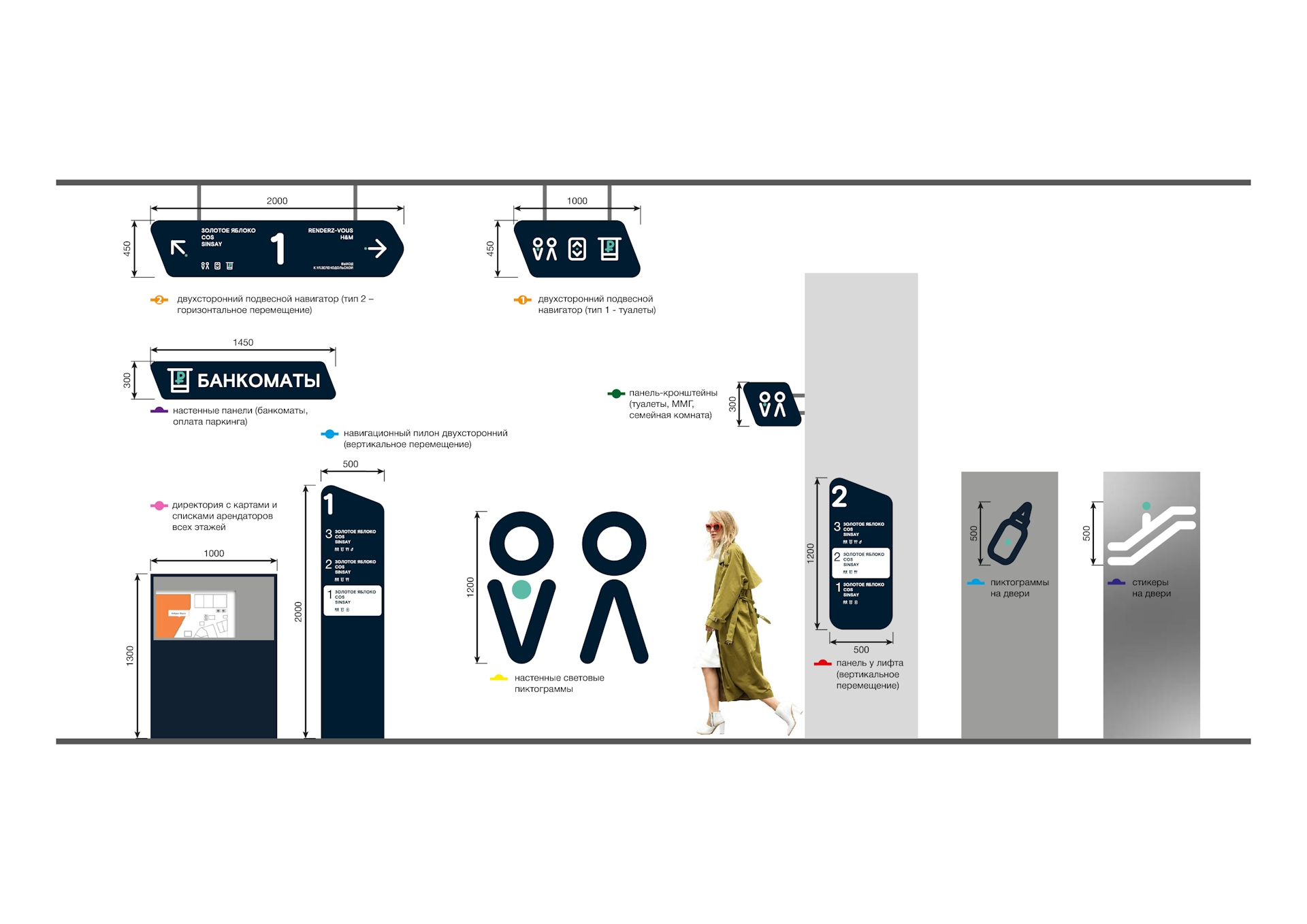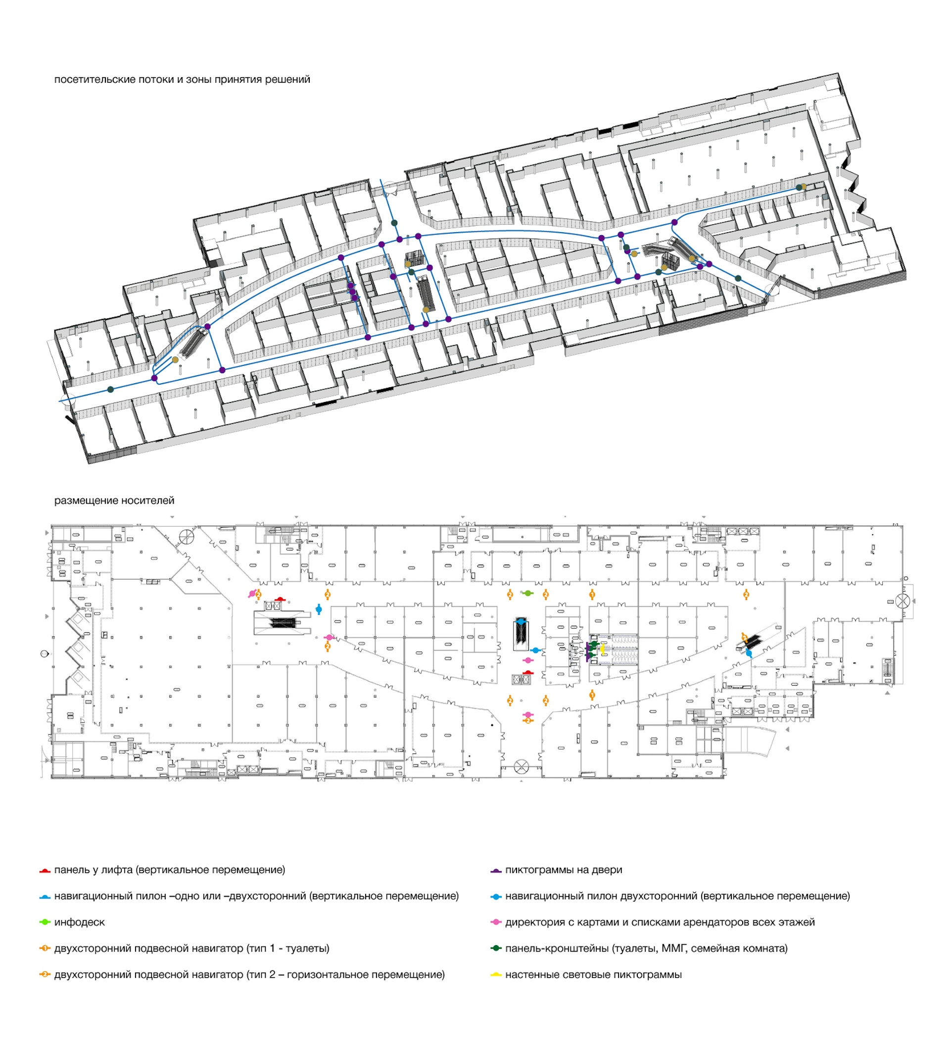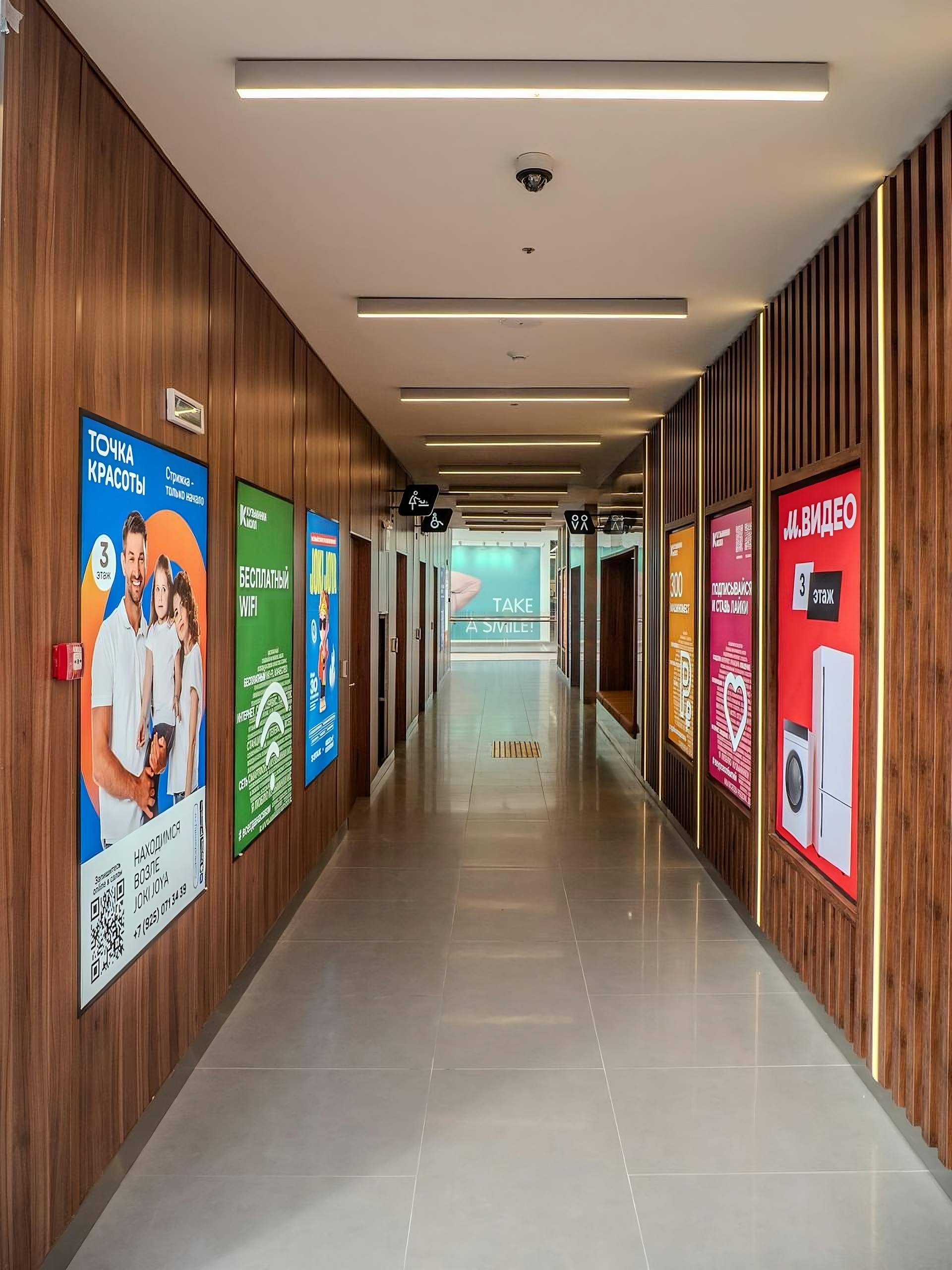 We paid special attention to creating convenient and clear navigation so that every visitor can easily orient themselves in the space. We developed intuitive signs and maps that seamlessly integrate into the overall interior design, giving it an aesthetic appeal. The use of modern fonts and color schemes, along with clear and concise information on navigation elements, allows for quick access to the desired stores and services.