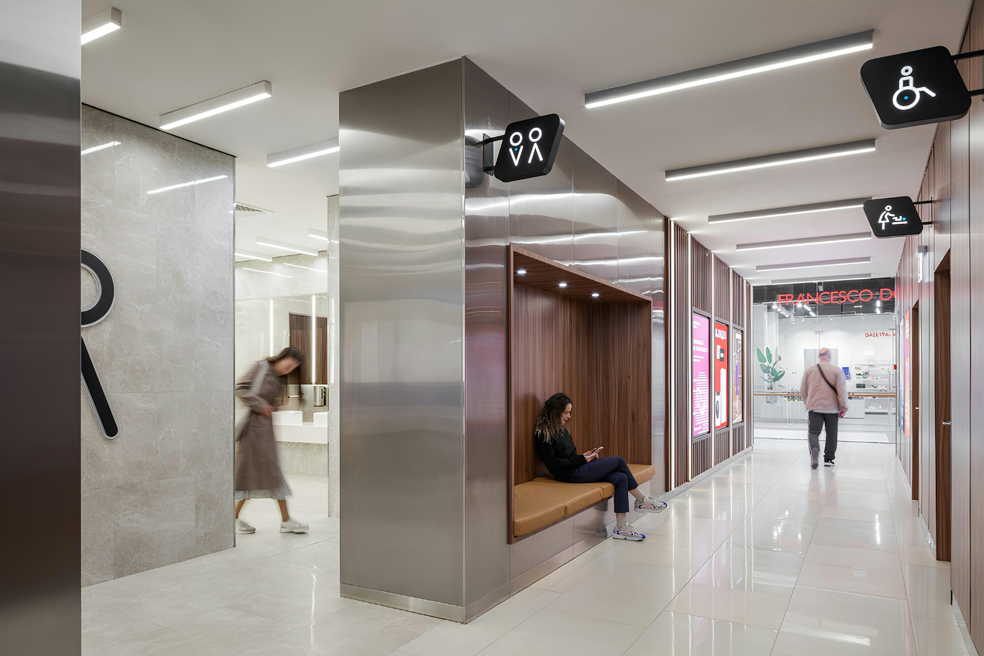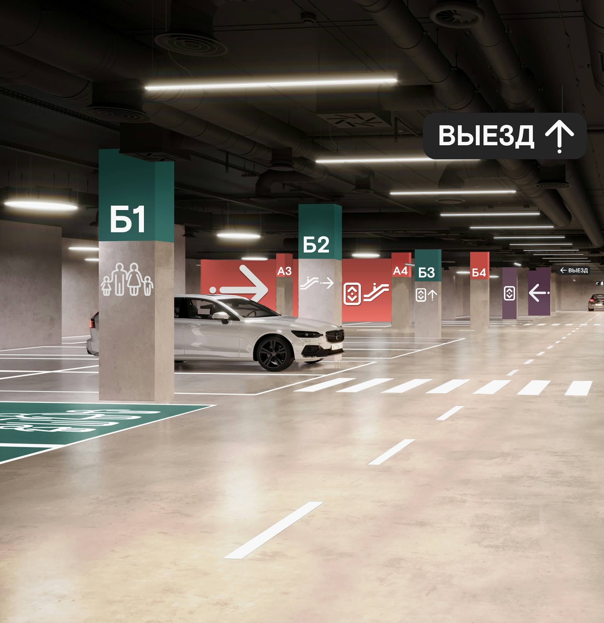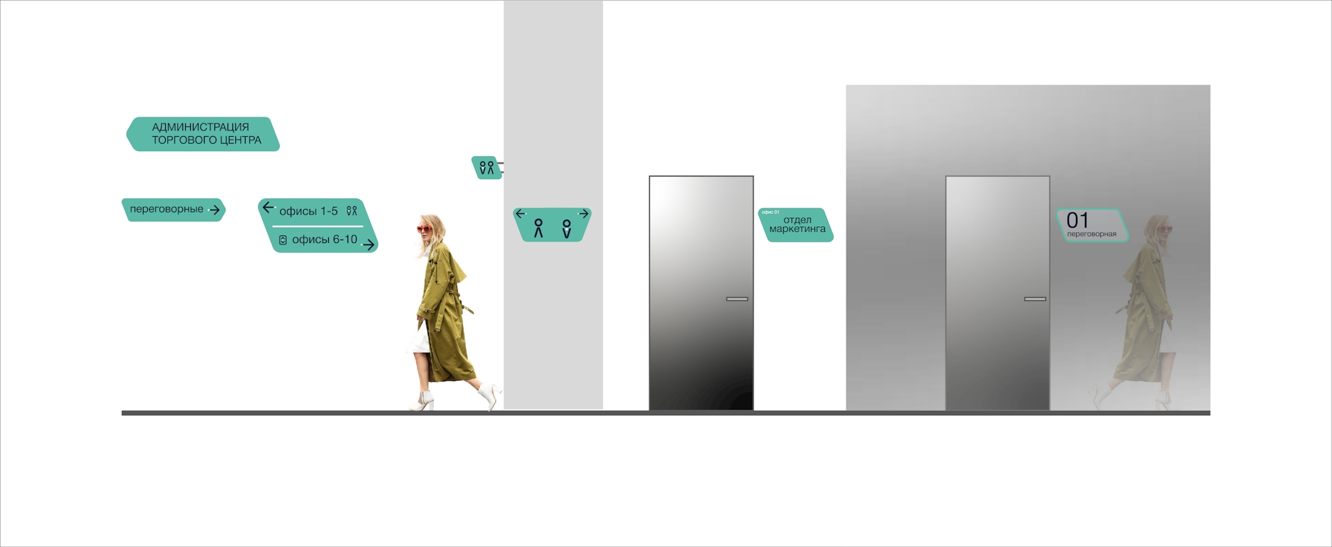 We paid special attention to creating convenient and clear navigation so that every visitor can easily orient themselves in the space. We developed intuitive signs and maps that seamlessly integrate into the overall interior design, giving it an aesthetic appeal. The use of modern fonts and color schemes, along with clear and concise information on navigation elements, allows for quick access to the desired stores and services.