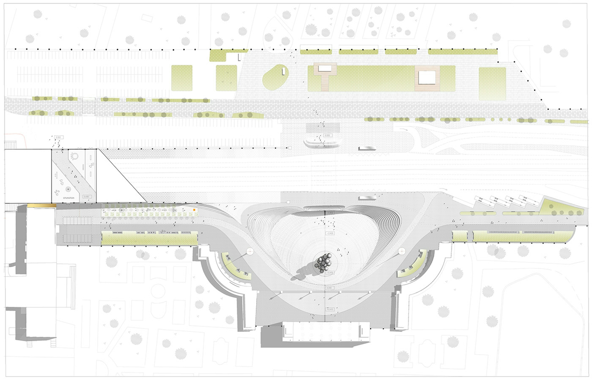 The landscape will include topping, greenery and sit elements. All of them are following key directions and axis’s and emphasizing already exisitng architectural historical elements. The greenery is guiding us toward park and is bringing the feeling of park experience to the square. We are differentiating the main passages and access zones for high people flow and curve out wait zones and more quiet areas.