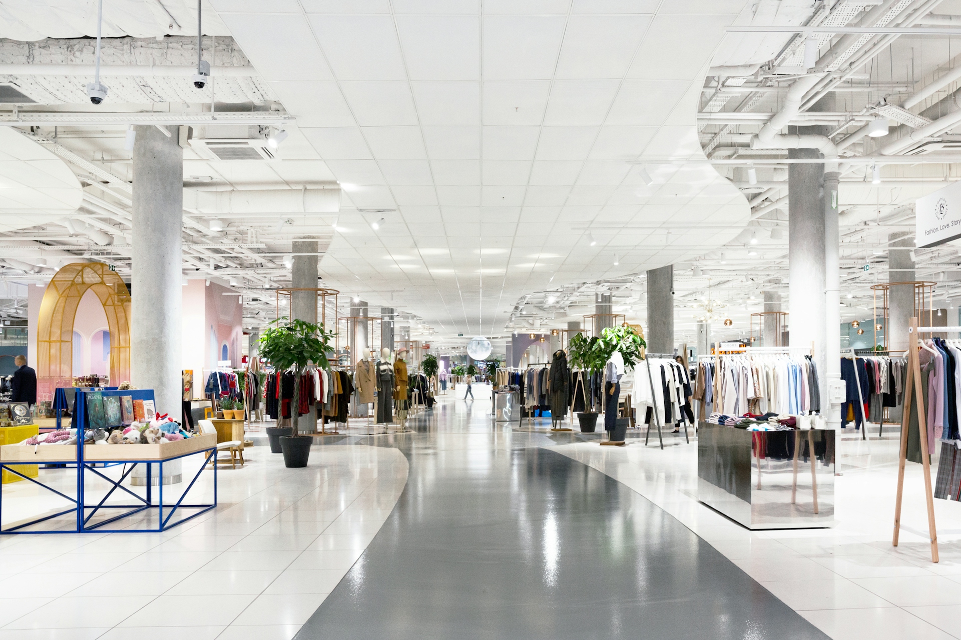"The Island of the Rising Sun" is built on smooth lines and rounded shapes – it appears gentle and toy-like, yet still remains a department store, albeit a somewhat futuristic one. At the center of the composition is a platform framed by an arched rotunda and the "Moon," which is frozen in eternal dawn, with the shoppers' paths laid out as if in its shadow. The shades of sunrise in the interior contrast with the sunset hues of the first phase of the store. The second phase of Trend Island is designed for a large number of women's clothing brands, so it was important for the designers to incorporate softness and fluidity into the interior elements. The first phase of this fashion space, built in 2016, has already become a landmark project for the Aviapark shopping center and for Moscow as a whole. Therefore, one of the tasks in developing the design for the second phase was to reinforce the overall concept and brand of the department store. We created a "legend" that the new phase of the project serves as a reflection in a magical mirror of the existing "Sunset Island" – the second half of the department store becomes the "Island of the Rising Sun."