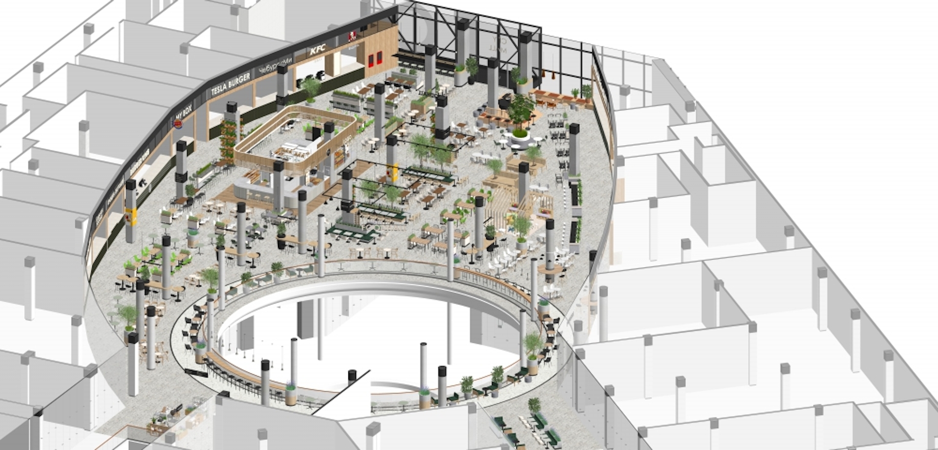 To update the interiors of the foodhall in the Tyumen City Mall shopping center, we proposed the design of a cozy, inspiring space where the visitors' attention focuses on a variety of corners with delicious food. The existing interiors of the food court of the shopping center required a modern embodiment – and for the project we chose a new style that refers guests to the world's best examples of gastronomic clusters’ design.