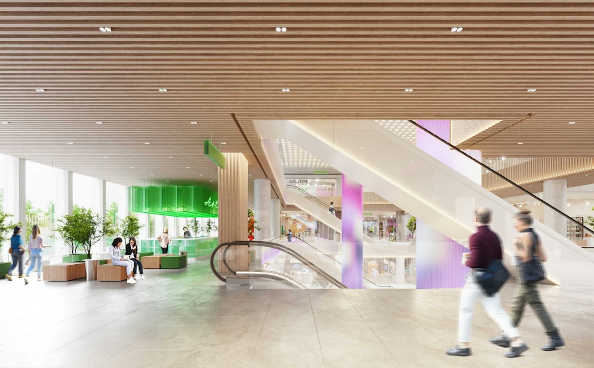 The aesthetics of museums became an inspiration in the design of interiors. There is already an art space on the territory of ZILART, and the shopping center will become an additional factor to attract visitors to the object: with its design, it will resemble spacious, bright museum halls. The result of the work was a minimalistic, but at the same time warm and memorable project with bright accents and natural wood textures. Light design and digital screens become accents on a snow-white background, and can continuously change the character and style of the interior in a matter of seconds, making it dynamic.