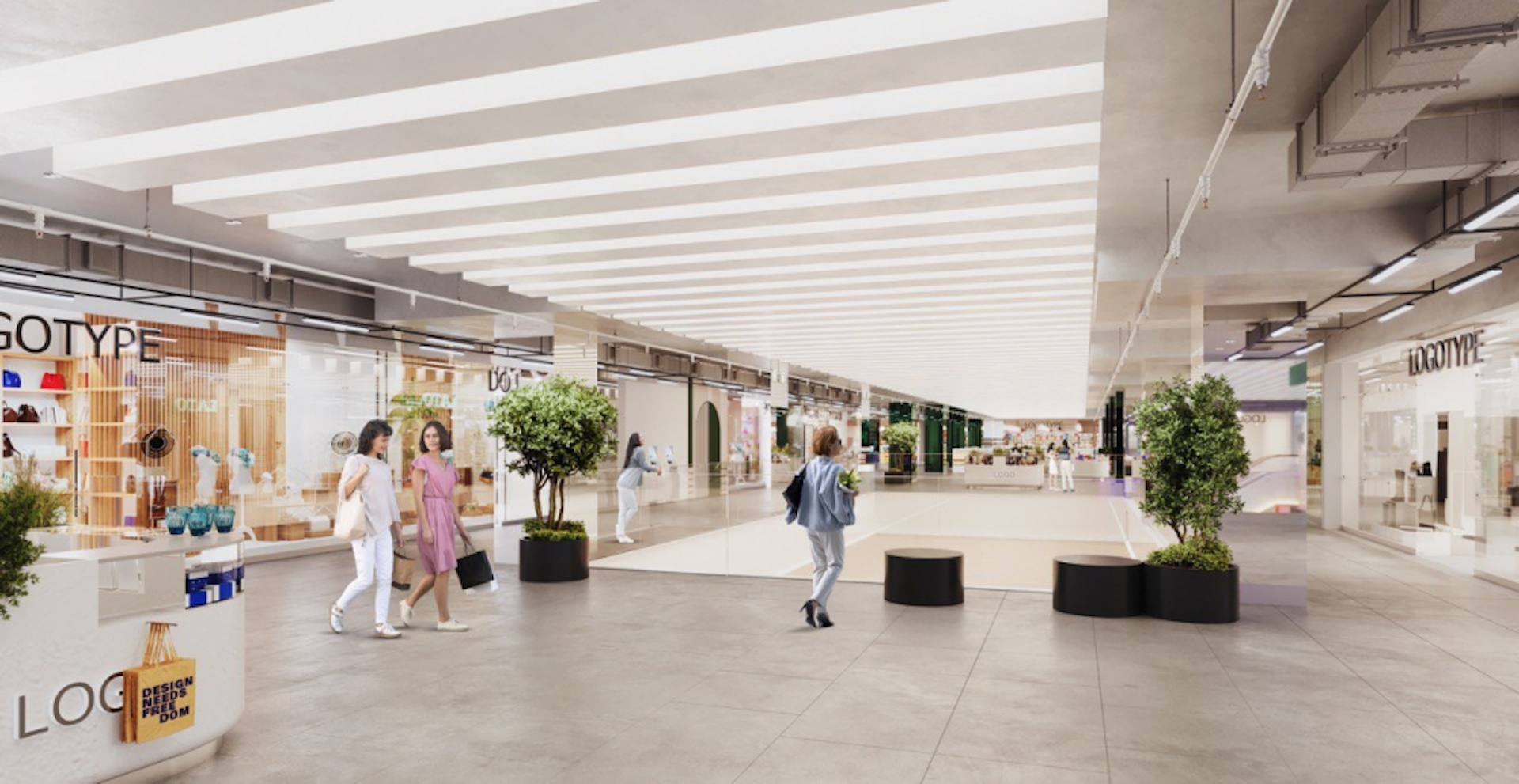 For the new shopping center on the territory of ZILART, the concept of minimalistic modern interiors was created, which at the same time will reflect the stylistics of the object's surroundings.