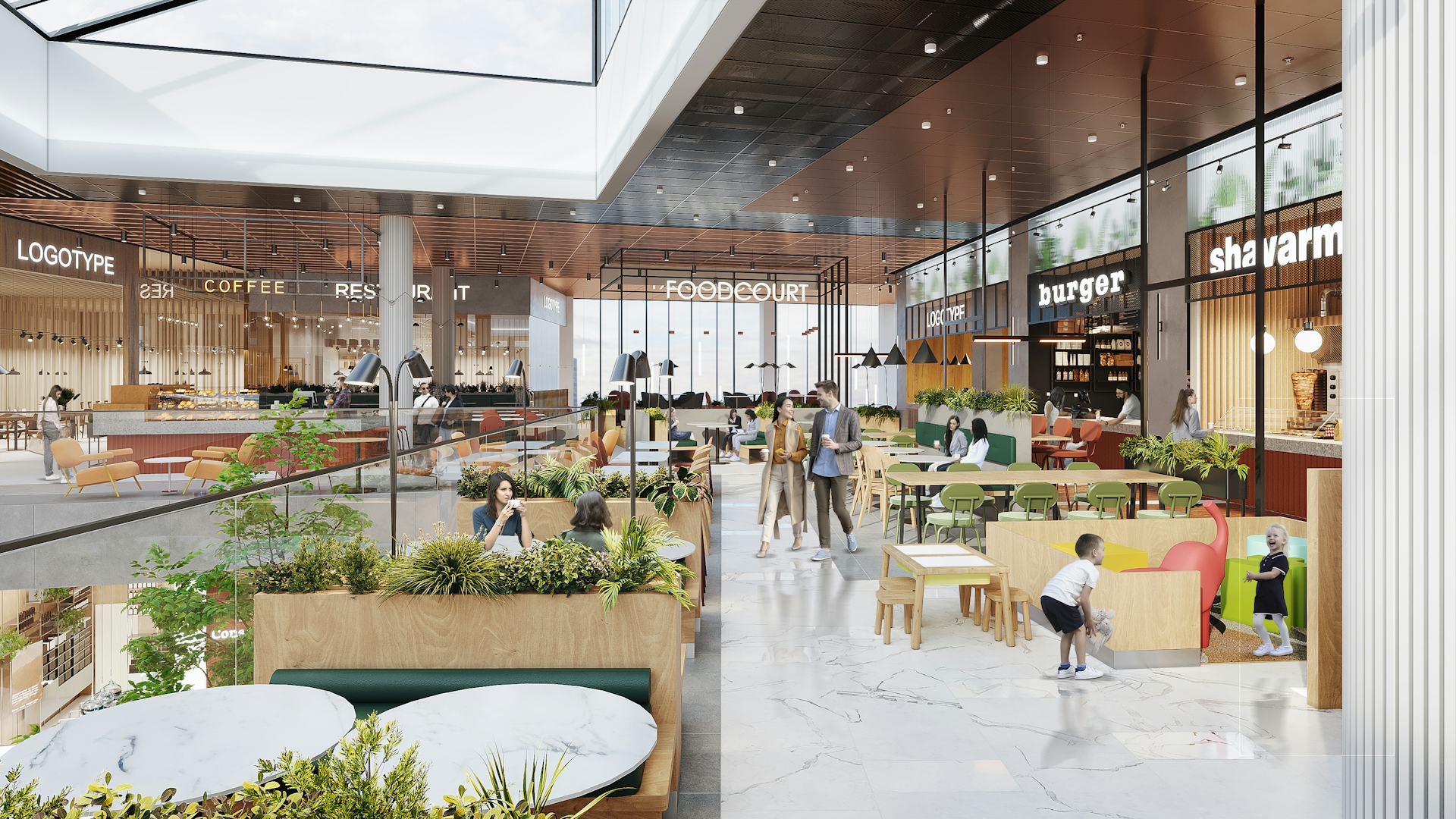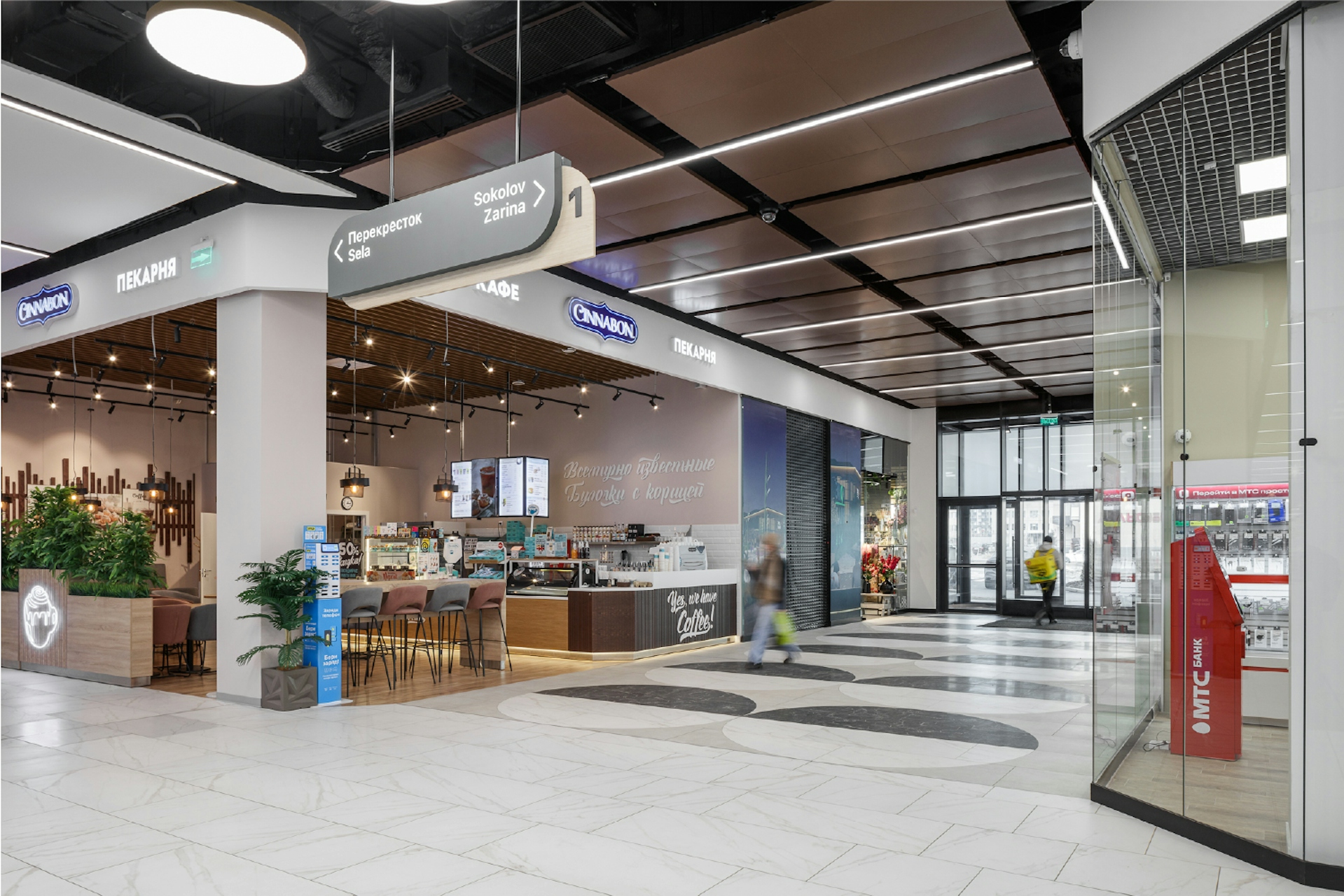 BLANK разработали концепцию фасадов здания, а также создали фирменный стиль объекта, дизайн интерьеров и концепцию визуальной навигации торговой галереи и фудхолла "ГастроПарк". В наши задачи также вошли разработка рабочей документации и авторский надзор за реализацией проекта.