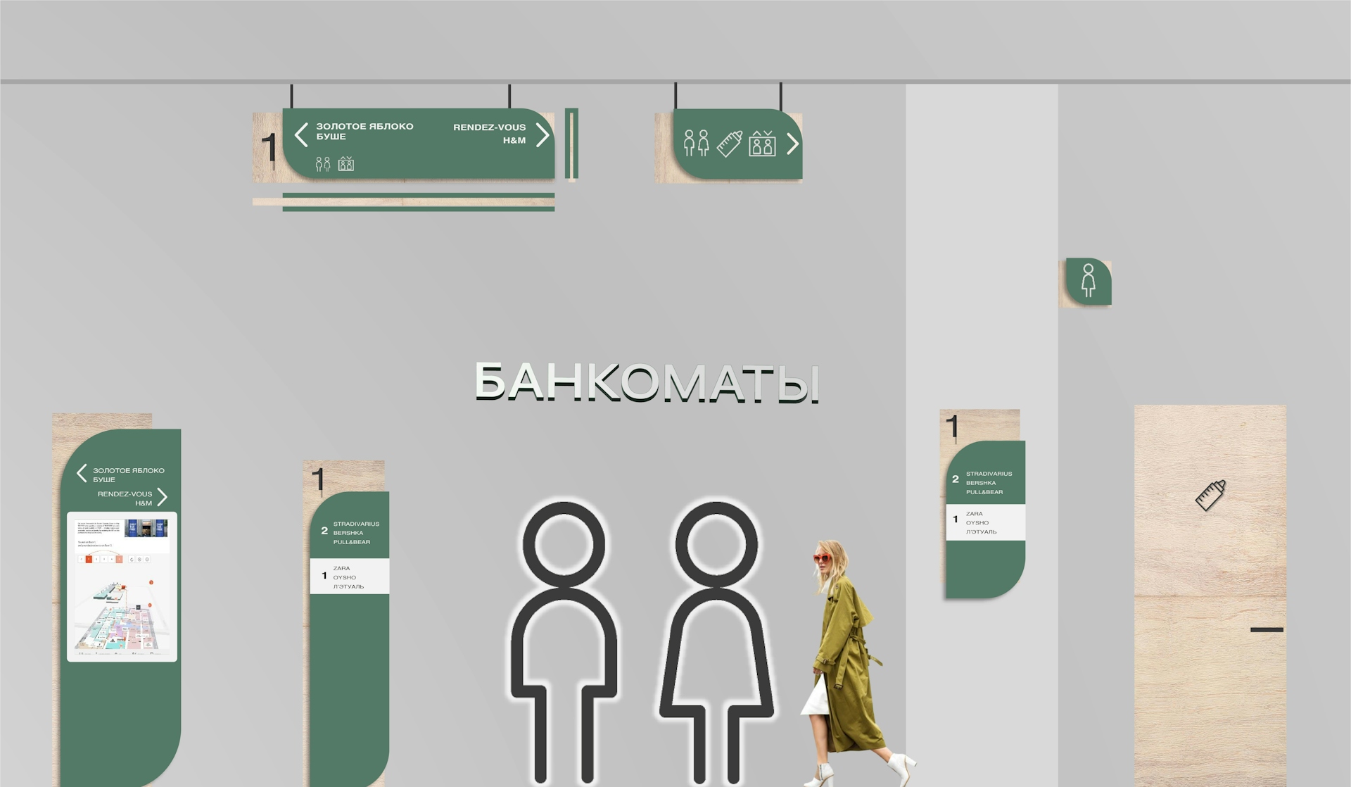 Неотъемлемой частью клиентского опыта и пути, а также айдентики объекта в целом является визуальная навигация. Разработанная нами концепция - это продуманные маршруты, внимательное отношение ко всем проблемным зонам и точкам принятия решений посетителями, приятный дизайн, отвечающий современным тенденциям и не теряющий своей актуальности, гармонично вписанный в интерьеры и эффективно решающий информационные задачи.