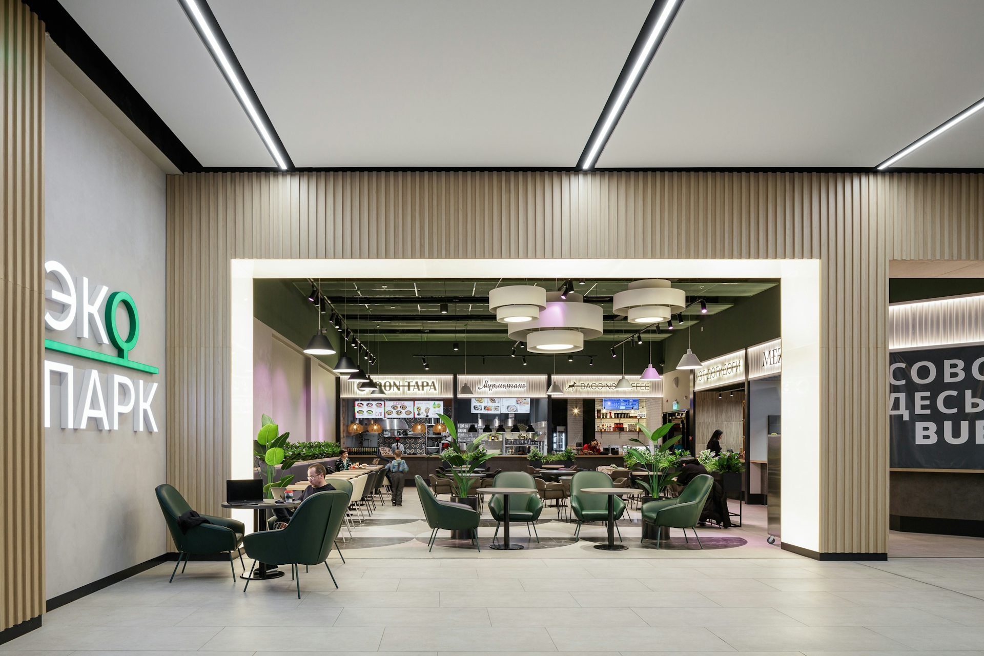 Торговый центр окружен жилым районом, в котором отсутствуют сервисы для работы, отдыха, развлечений и социализации. ЭкоПарк стал центром притяжения, включив в себя все эти функции. Один из недостатков Мурино - отсутствие зеленых парковых зон для прогулок и отдыха. Новый торговый стал островком зелени, который радует жителей, особенно в холодные зимние месяцы. Фирменный стиль, разработанный нами для ЭкоПарка, с одной стороны, стал графической базой для атмосферы интерьеров, а с другой стороны – служит инструментом и основой внутренних и внешних коммуникаций с аудиторией, для которой объект становится целостным брендом с ярко выраженными позиционированием, ценностями и миссией, прослеживающимися на всех этапах пути клиента.