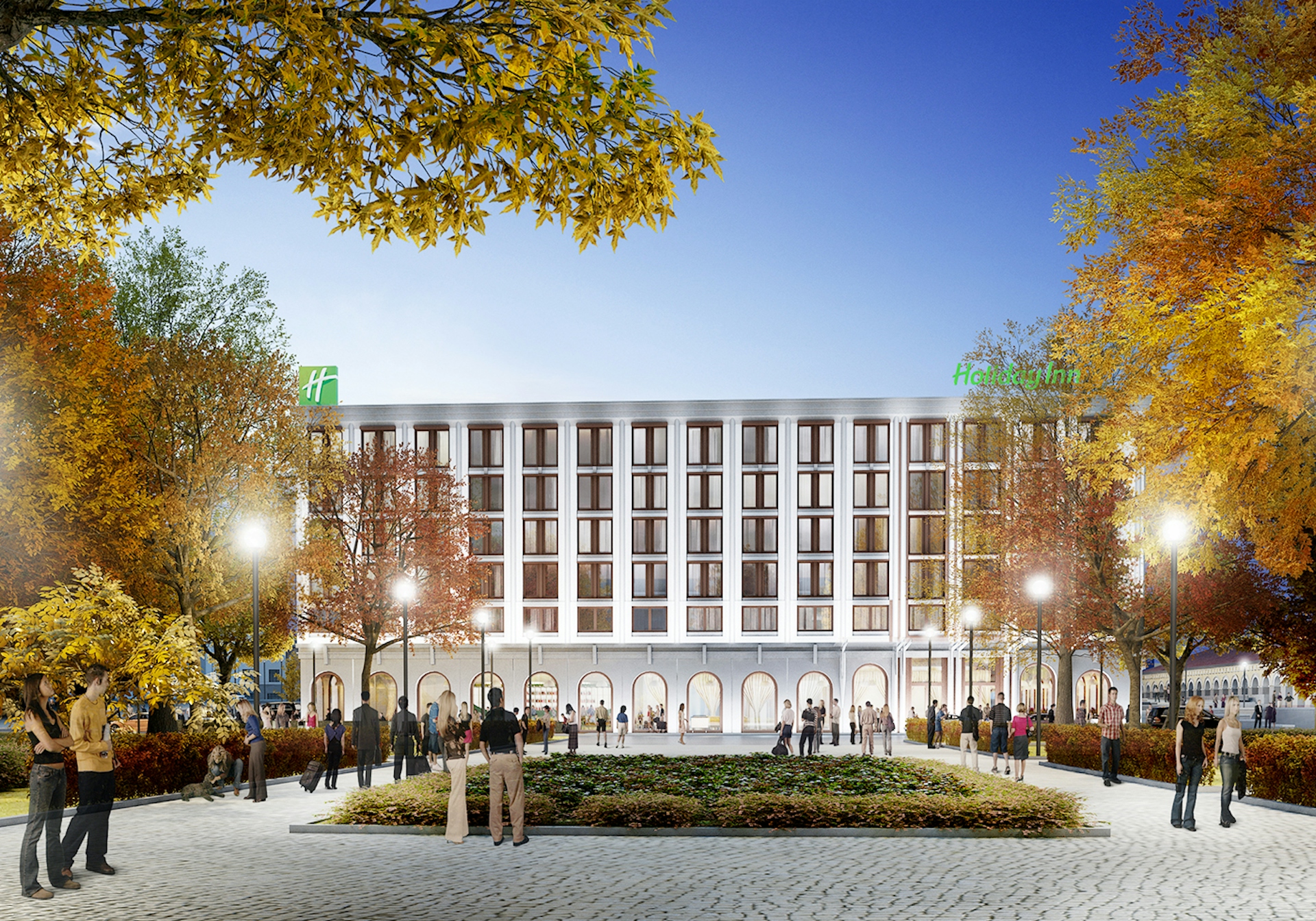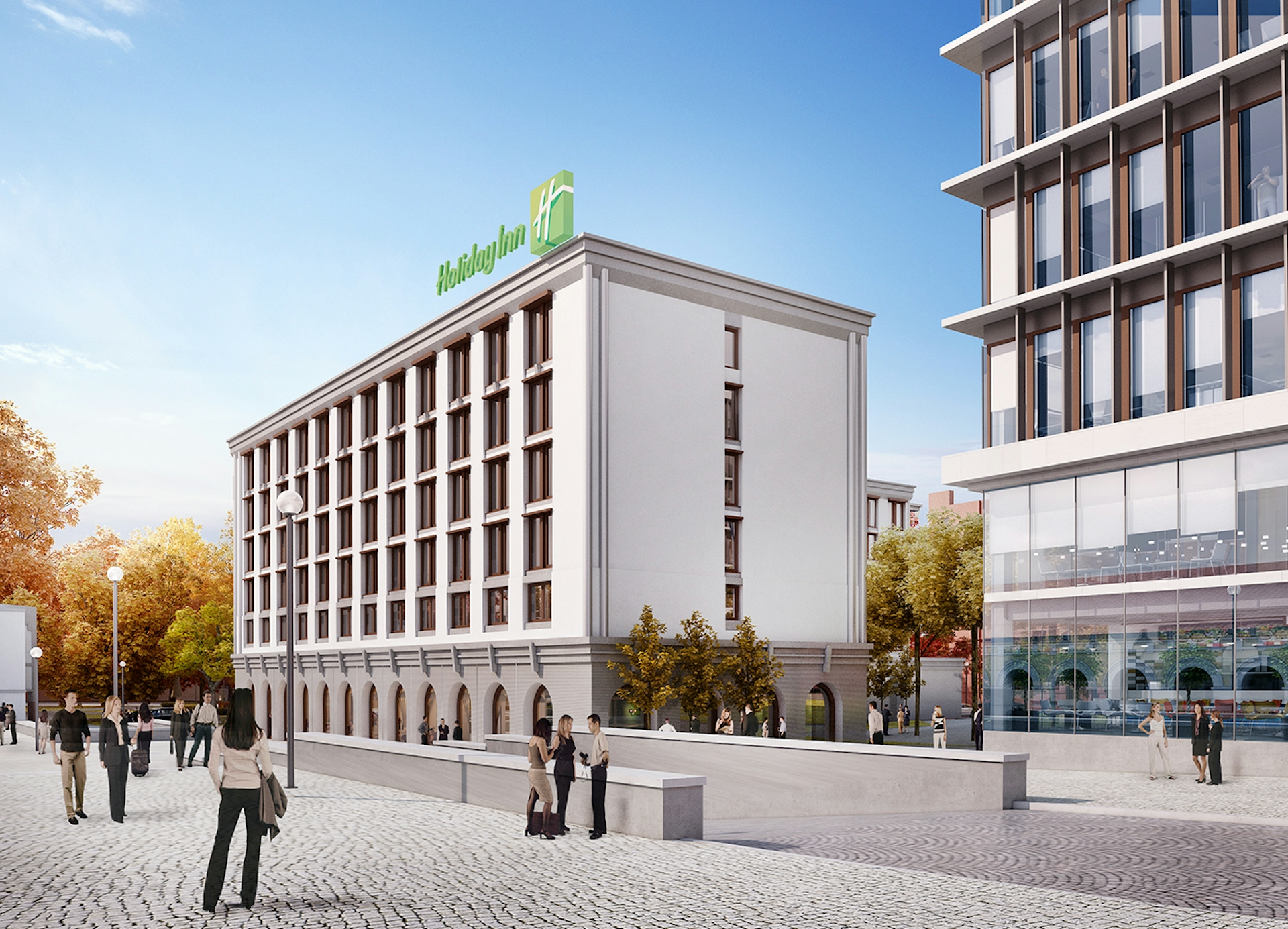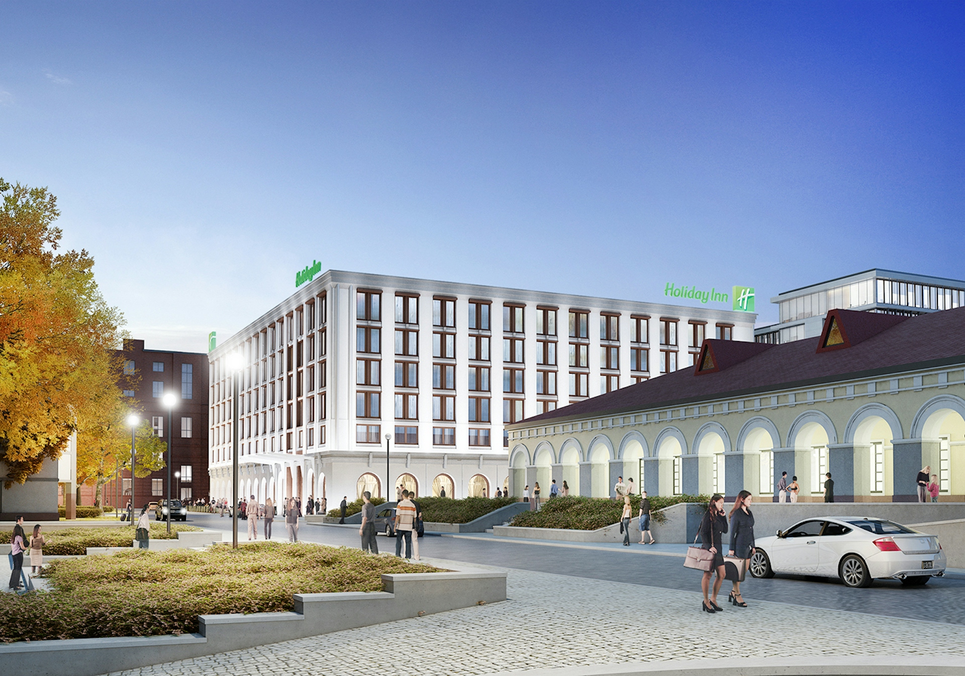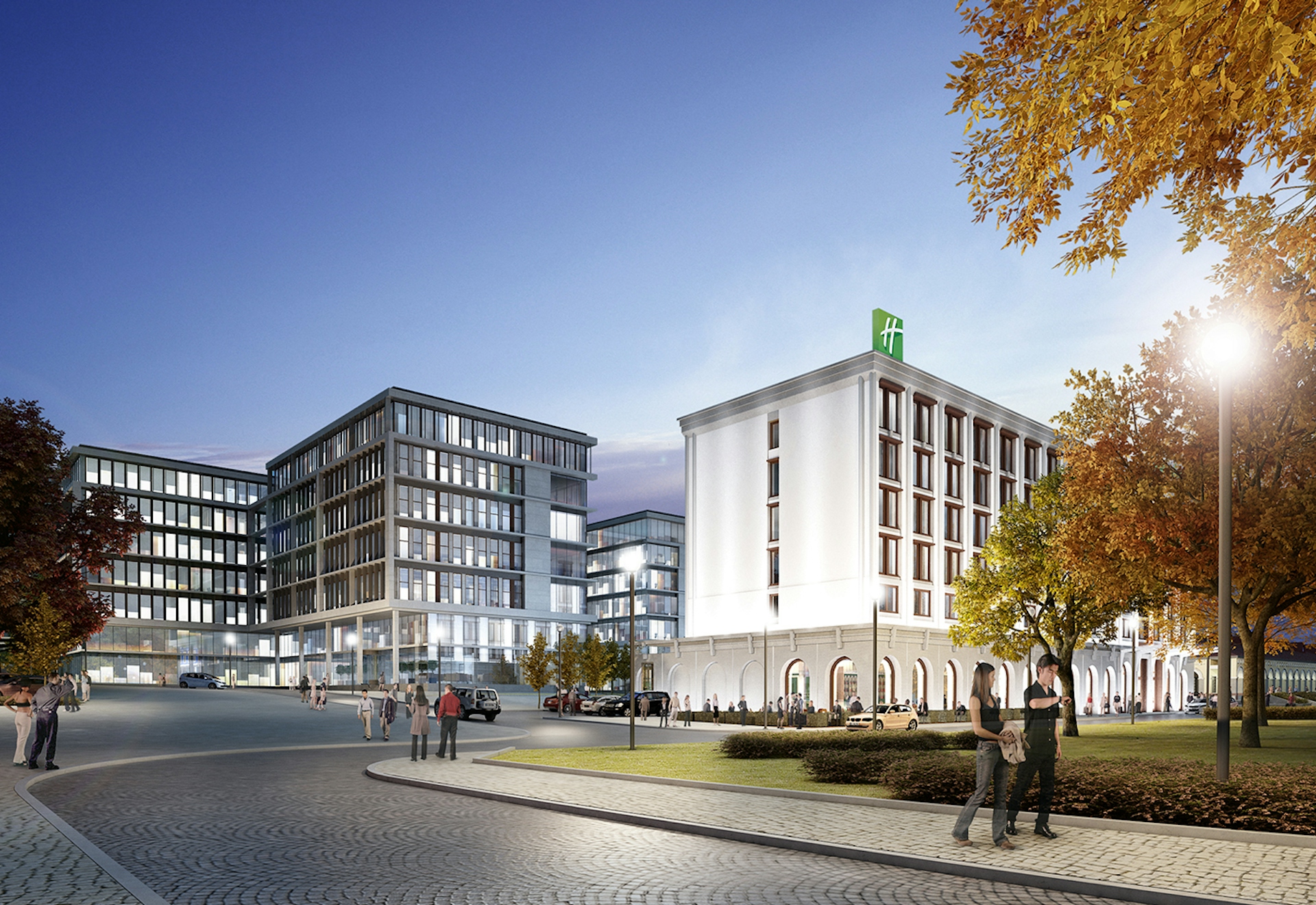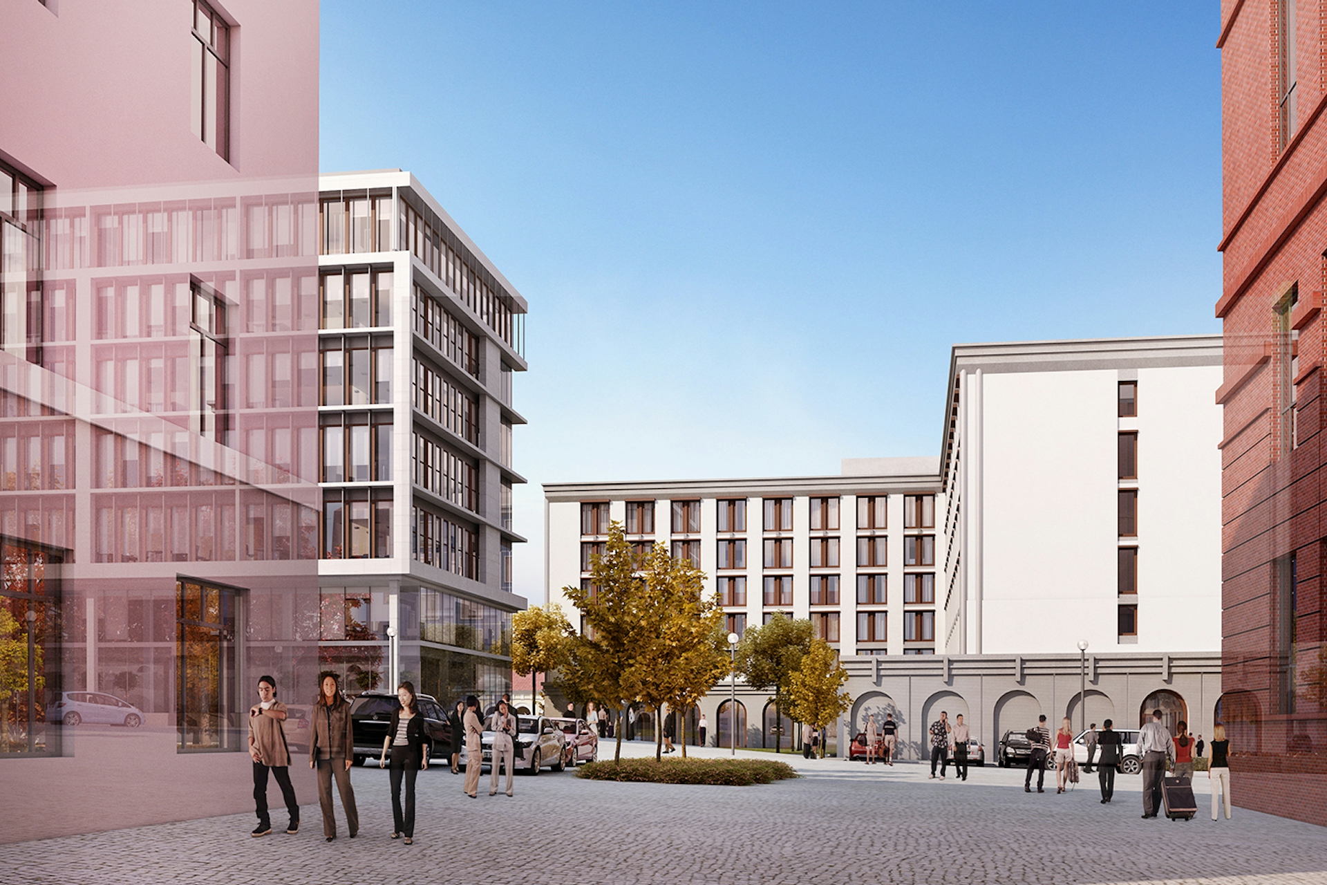 Первая концепция состояла в том, чтобы создать пешеходный бульвар через участок, связывающий парк со зданием отреставрированного исторического рынка. Бульвар проходит через ландшафтный внутренний дворик между проектируемым отелем и офисным центром и завершается входной группой ресторана на первом этаже офисной части. Вторая идея концепции состояла в том, чтобы объединить внешний, классический вид зданий, с современными потребностями их пользователей. Классический фасад отеля визуально расположен на одной линии со старым рынком и формирует единый облик комплекса.