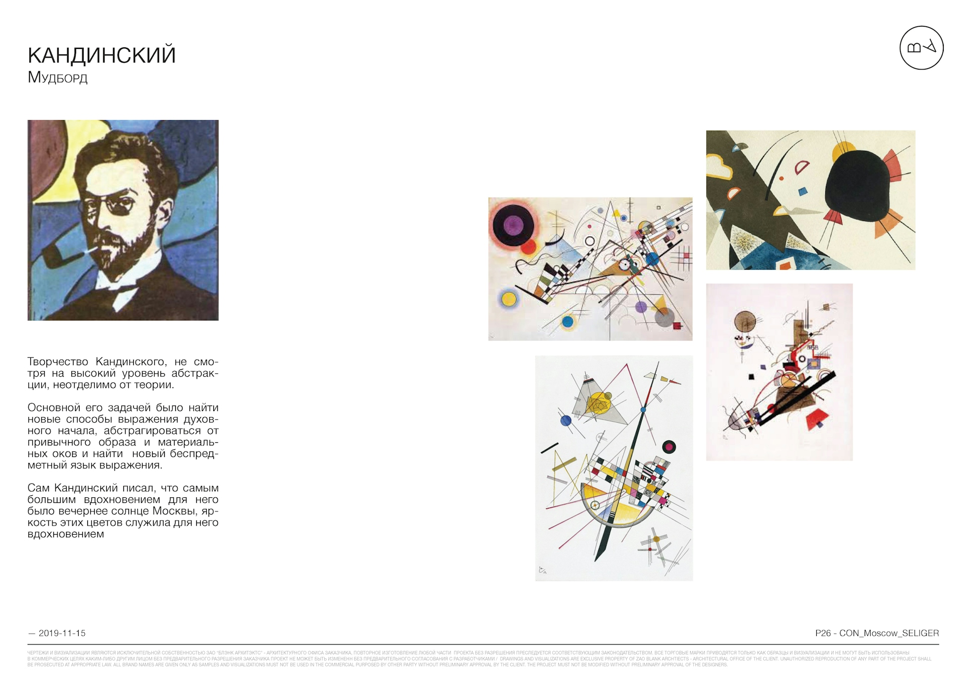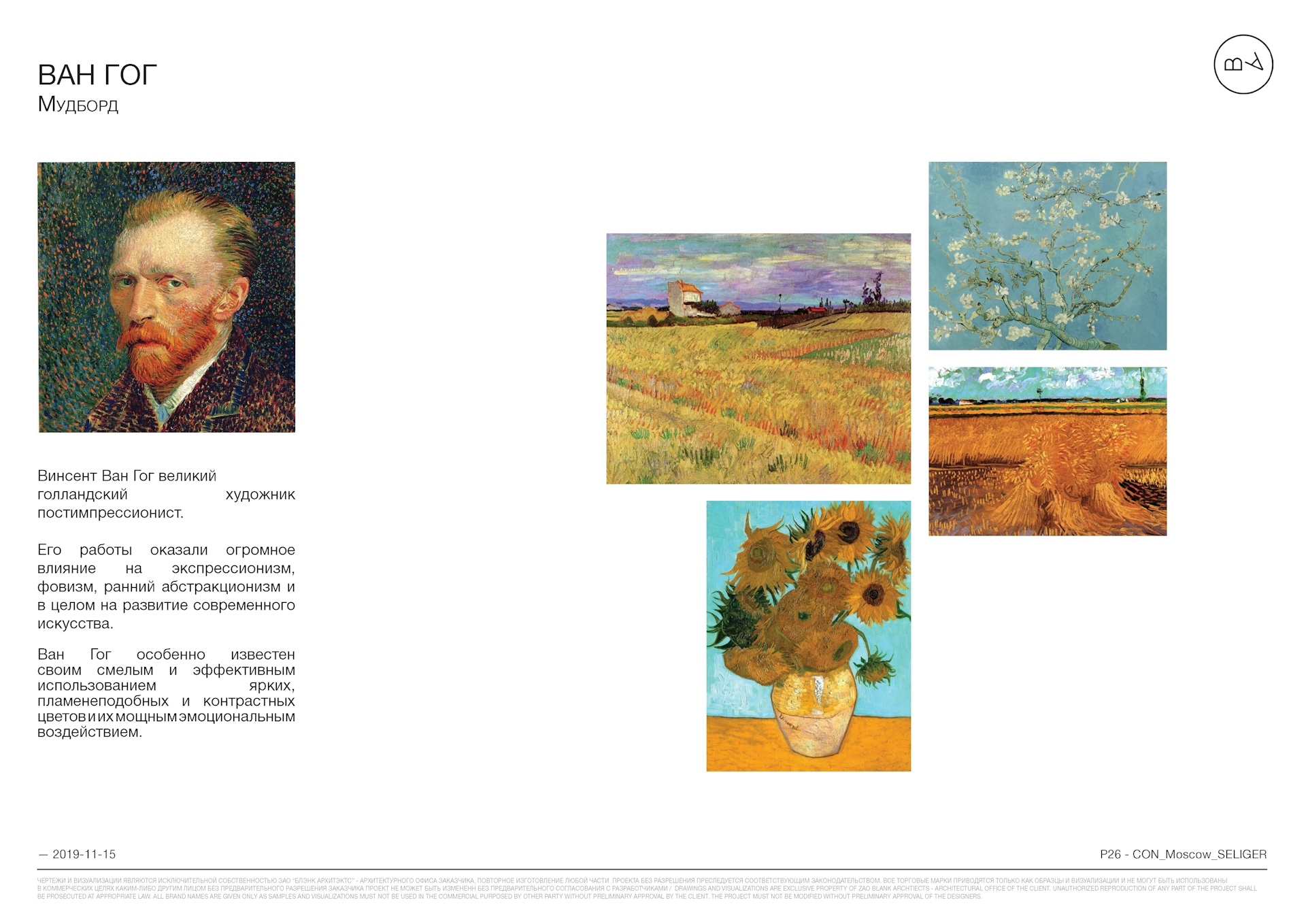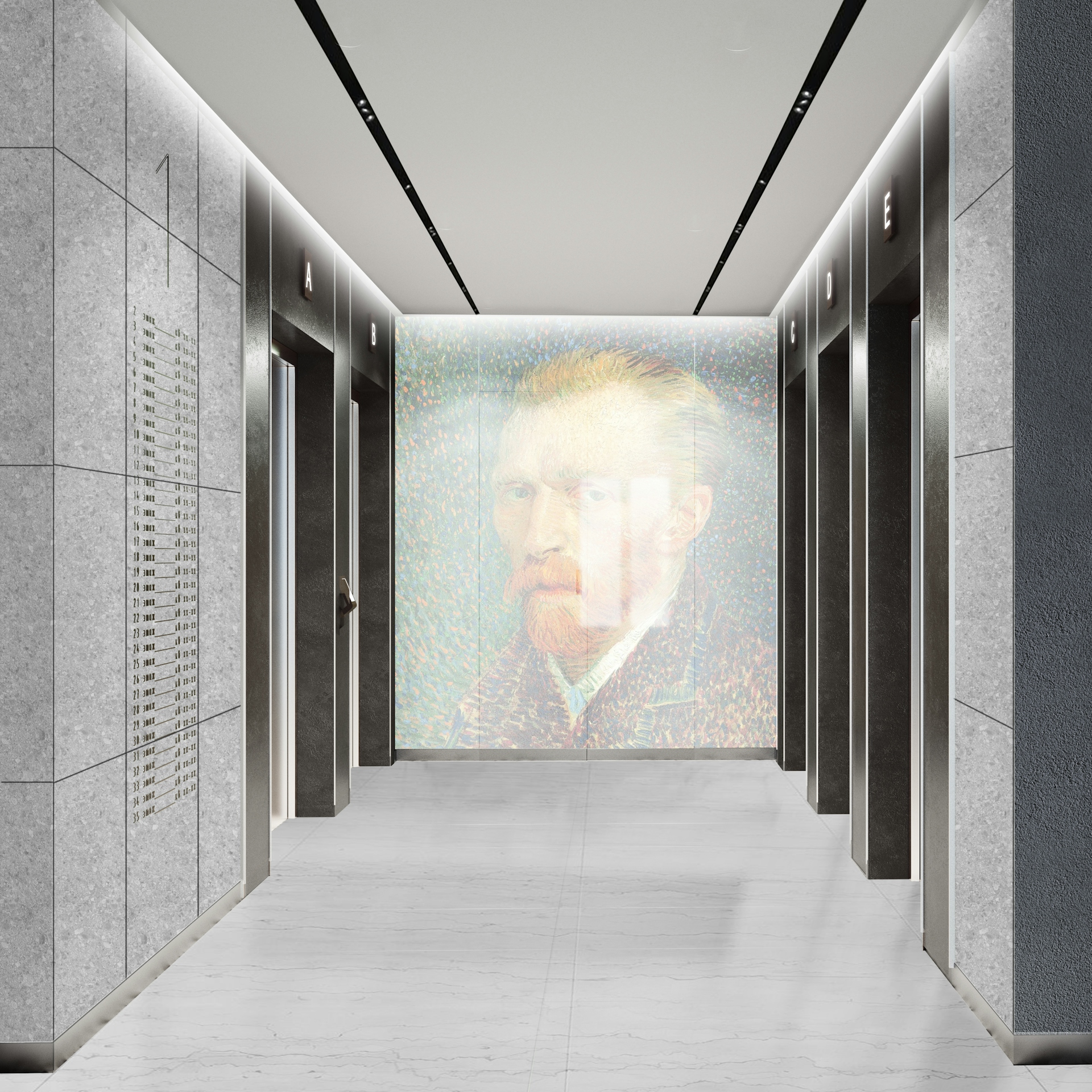 Для лобби башен «Ван Гог» и «Кандинский» в третьей очереди проекта мы использовали в интерьерах палитру красок, характерных для картин мастеров.