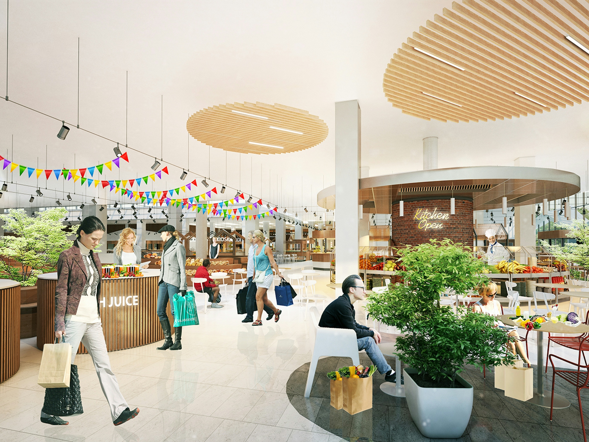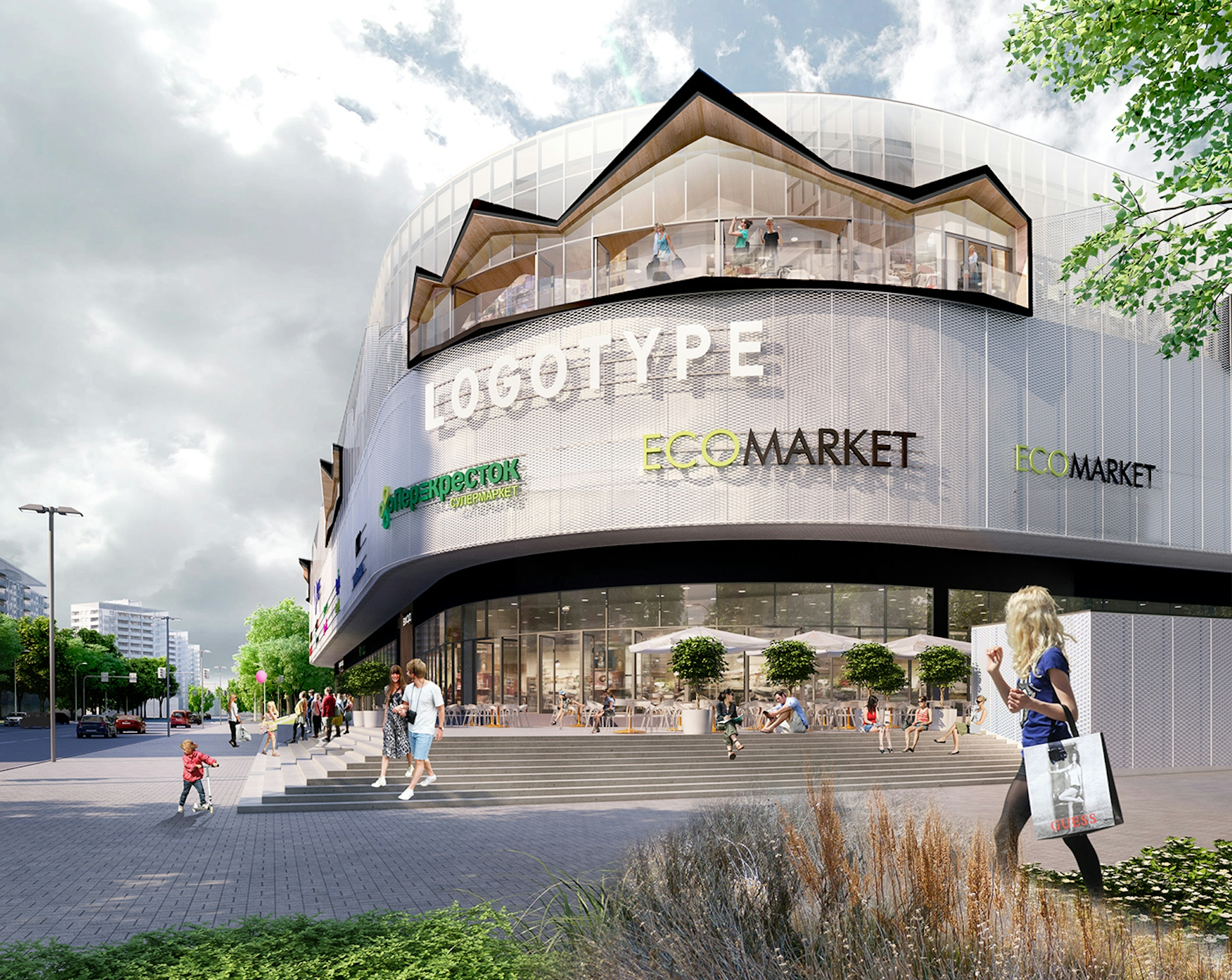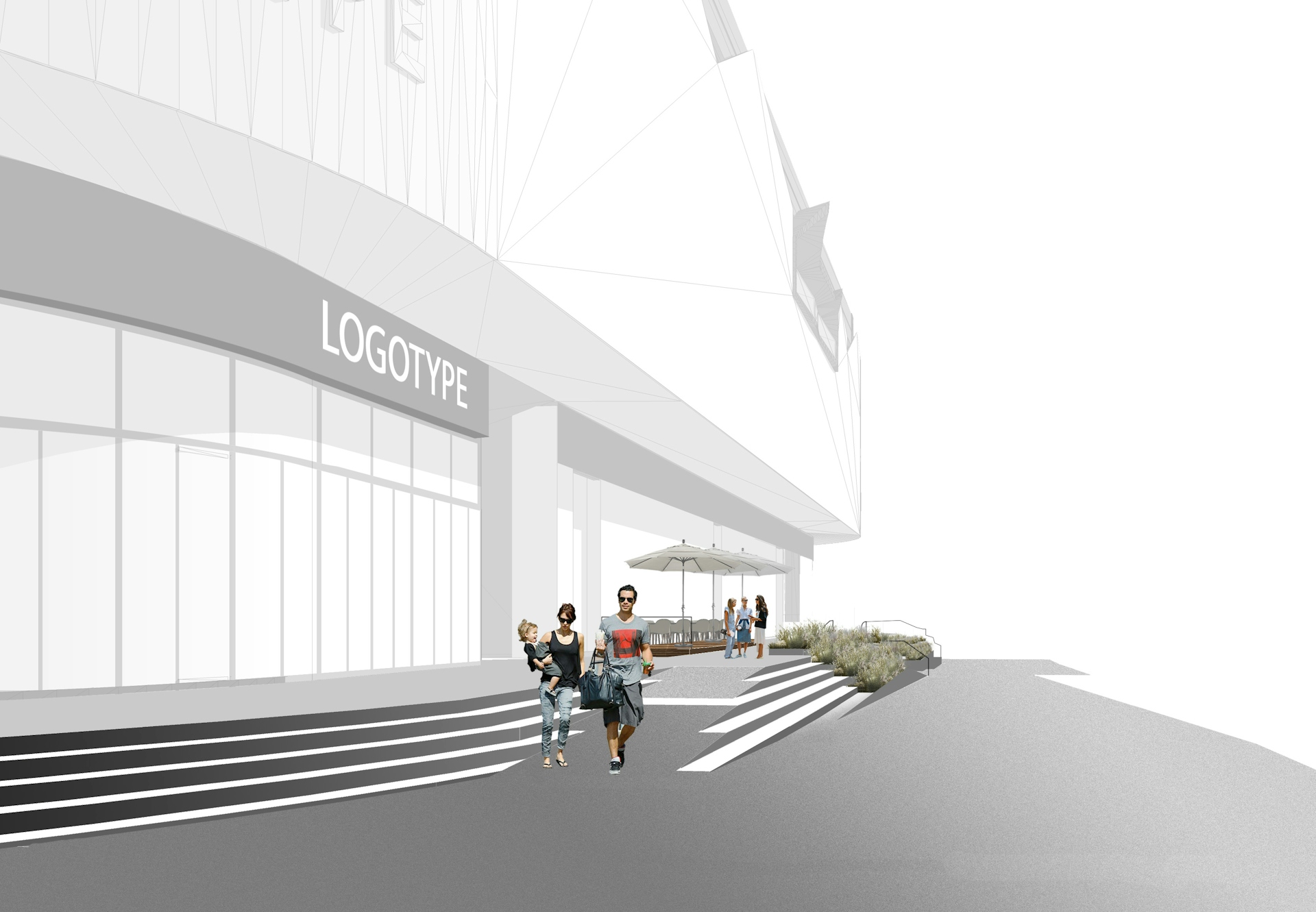 Проект "5th Avenue" представляет собой новую интерпретацию современного торгового центра, акцентирующую внимание на плавных и изогнутых формах здания. Мы сохранили существующий бетонный каркас и обернули его легкими, ярко окрашенными панелями, которые будут подсвечиваться в ночное время. Входные зоны оформлены деревянными кубами, приглашающими посетителей войти внутрь. Мы используем те же цветовые решения, что и в интерьере, с декоративными деревянными панелями, создавая единый стиль. Для того чтобы подчеркнуть наличие зеленого рынка на третьем этаже, мы добавили декоративные навесы, напоминающие уличные рынки, а также открытые окна и террасы, которые выделяют свежий рынок и новые кафе Первый этаж имеет открытые витрины, которые в теплую погоду будут доступны для посетителей. Дизайн фасада отражает местную атмосферу и визуально передает изменения интерьера. Мы использовали натуральные материалы и яркие цвета, чтобы создать гармоничное пространство.