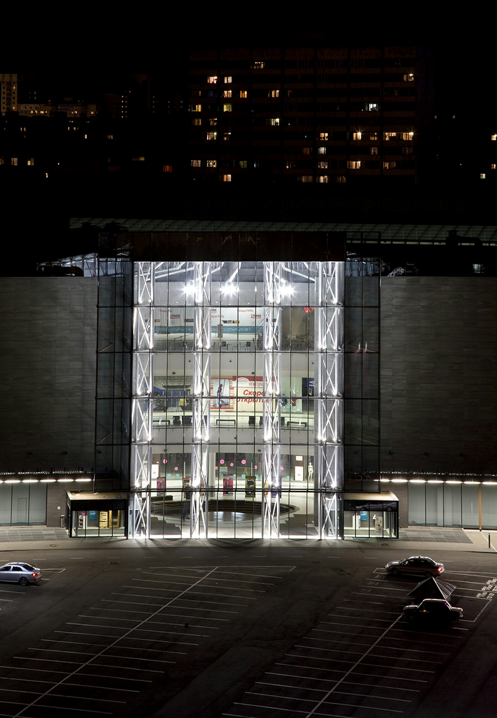 Торгово-развлекательный центр «Арена» расположен в Воронеже, городе с населением около миллиона человек в юго-западном регионе Российской Федерации. Это региональный торговый центр на бульваре Победы в густонаселенной части города, на угловом участке, который замыкает квартал. Здание хорошо заметно и придает сильный акцент району. Близлежащий парк является приятным дополнением развлечений на открытом воздухе к торговым функциям здания. Задача состояла в том, чтобы создать простое и скромное здание, адаптированное к потребностям инвестора и района. Важно было спроектировать ТЦ, который стал бы местом семейного отдыха, поэтому необходимы были правильный масштаб, естественное освещение, понятные и четкие планировки и функции, которые подходили бы каждому члену семьи.