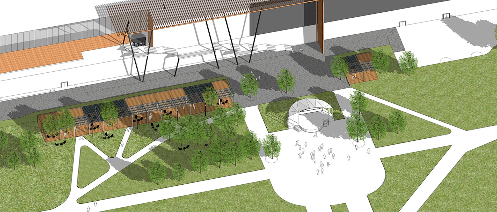 Наша команда спроектировала небольшой парк на бывшей открытой стоянке торгового центра, которая не была востребована. В процессе проектирования мы учли потоки людей в зоне входа и пешеходные дорожки от ближайших станций метро. Таким образом, мы упорядочили прежде хаотичное движение людей. Наша идея состояла в том, чтобы соединить парковую зону со зданием с помощью использования эко-материалов и привнести природу в торговый центр. Мы сформировали газоны перед уличным фасадом, чтобы создать в здании ту же атмосферу, что и снаружи. Многолетнее разнотравье – это приятный аромат и интересное движение на ветру, и ландшафт выглядит интересно и в зимнее время года. Мы также адаптировали торговый центр для маломобильных групп и создали галерею торговых павильонов, которые можно использовать для временной торговли. Проект реновации «Золотой Вавилон Отрадное» был представлен BLANK на выставке REX 2018. - Владимир Тихонов, младший партнер и руководитель мастерской моделирования